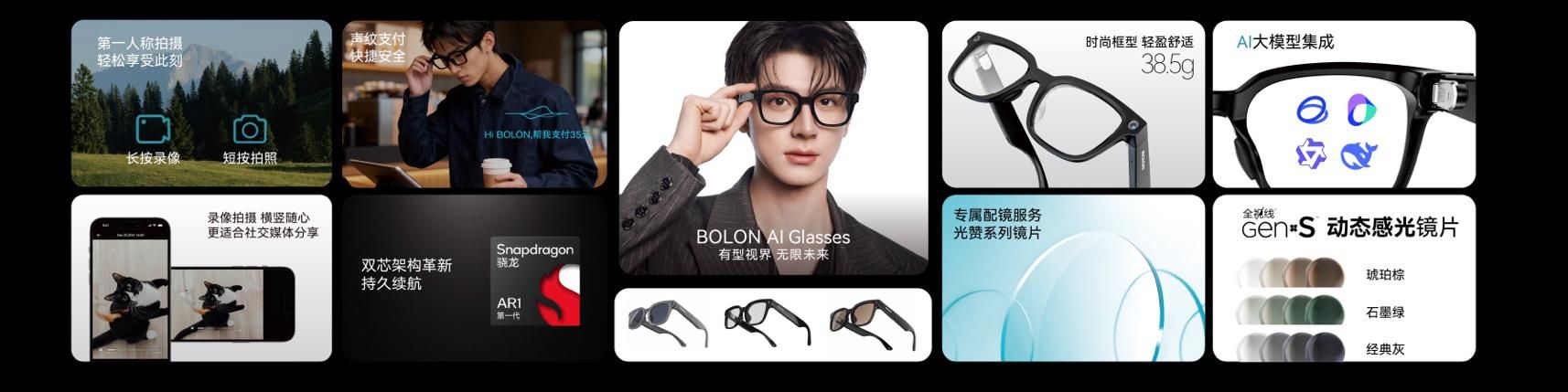 本次发布会的新品BOLON AI智能眼镜,以“时尚设计”与“硬核功能”为核心,成为智能穿戴领域的全新标杆产品。