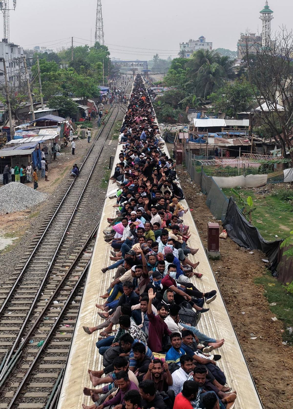 原标题:孟加拉铁路运力承压:节日返程现“车外载人”景象