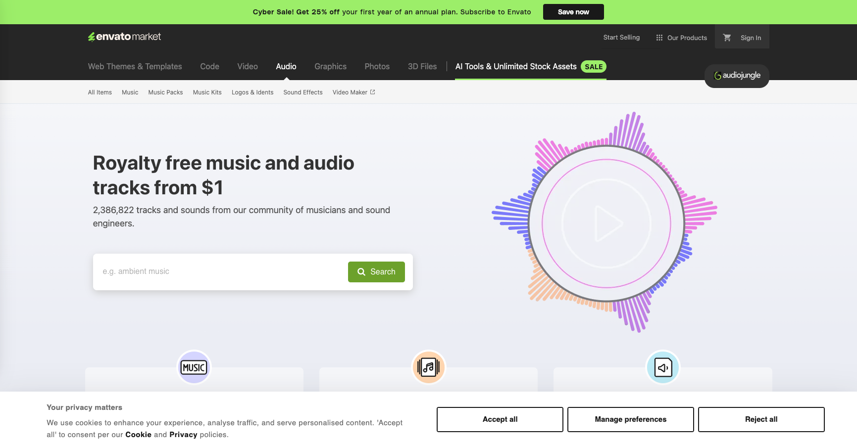 谁懂啊!当你预算有限但又需要海量选择时,Audio Jungle就是你的救命稻草! 它是Envato旗下的王牌音乐市场,堪称全球最大的音乐“淘宝”,几乎没有你找不到的音乐类型。