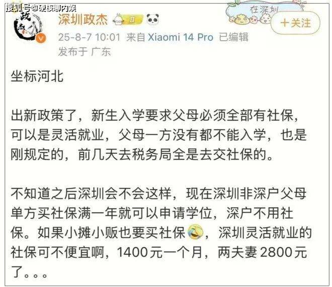 有大V爆料,河北新生入学要求父母必须全部有社保,可以是灵活就业。如下图: