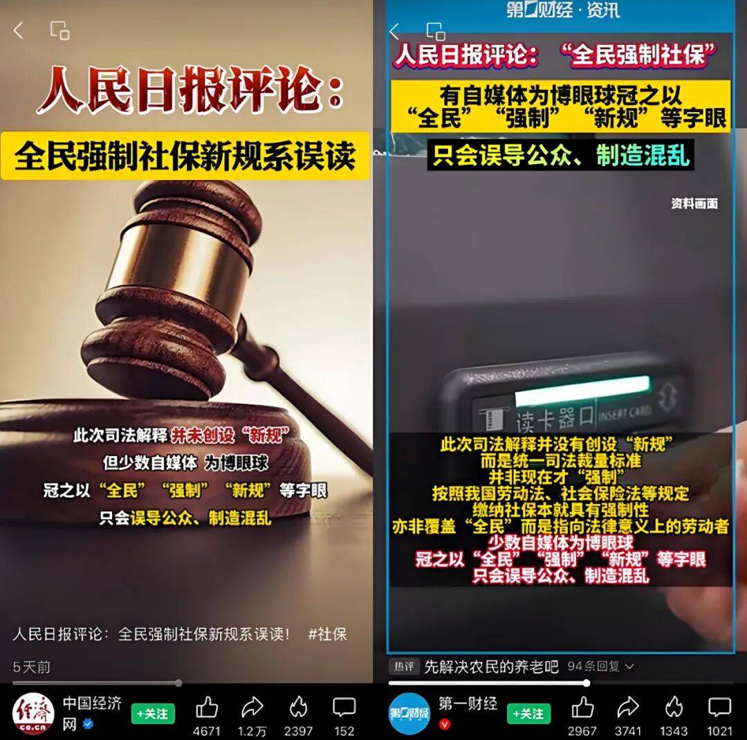 与此同时,我也看到《人-M-日-报》评论:所谓“全民强制社保”,不可误读政策、误导公众