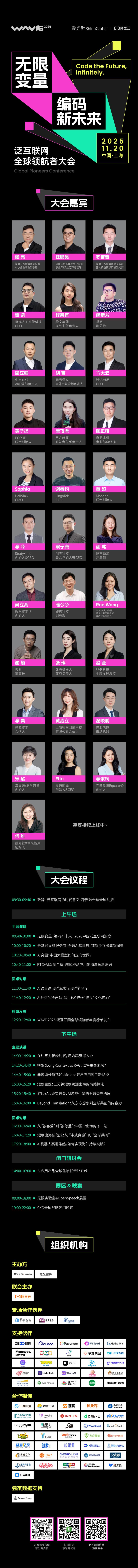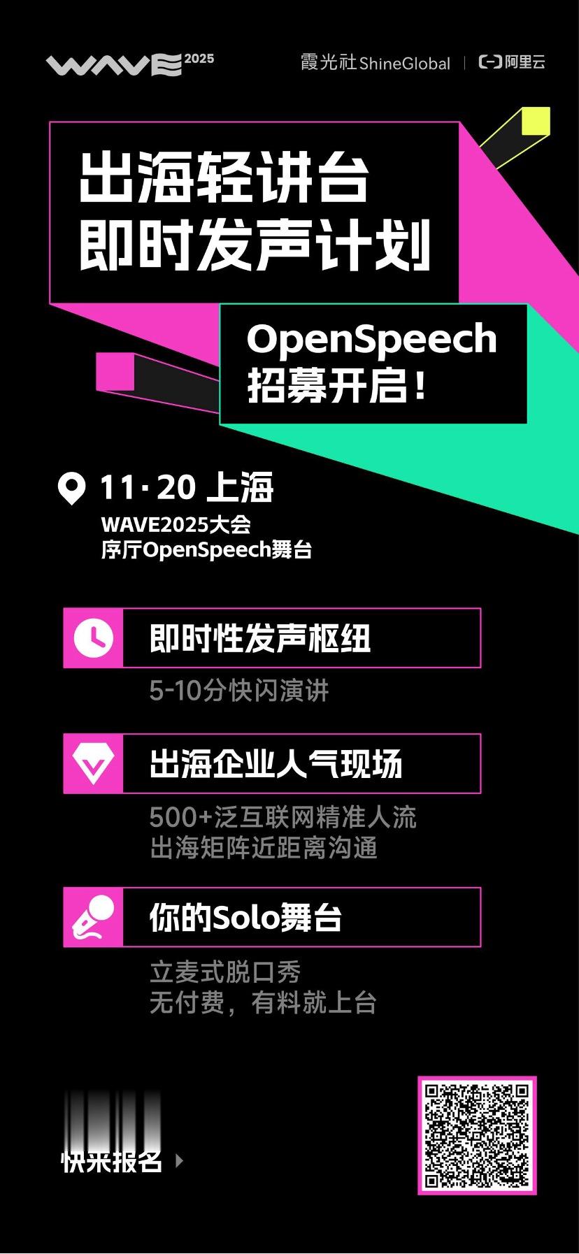 在这一背景下,霞光社与阿里云联合主办的 WAVE2025 泛互联网全球领航者大会即将于11月20日在上海举办。大会将汇聚全球洞察与实践者,共同探讨 2026 年泛互联网出海的趋势与应对策略——在不确定中寻找新的确定,为中国泛互联网企业提供高质量的交流与合作平台。