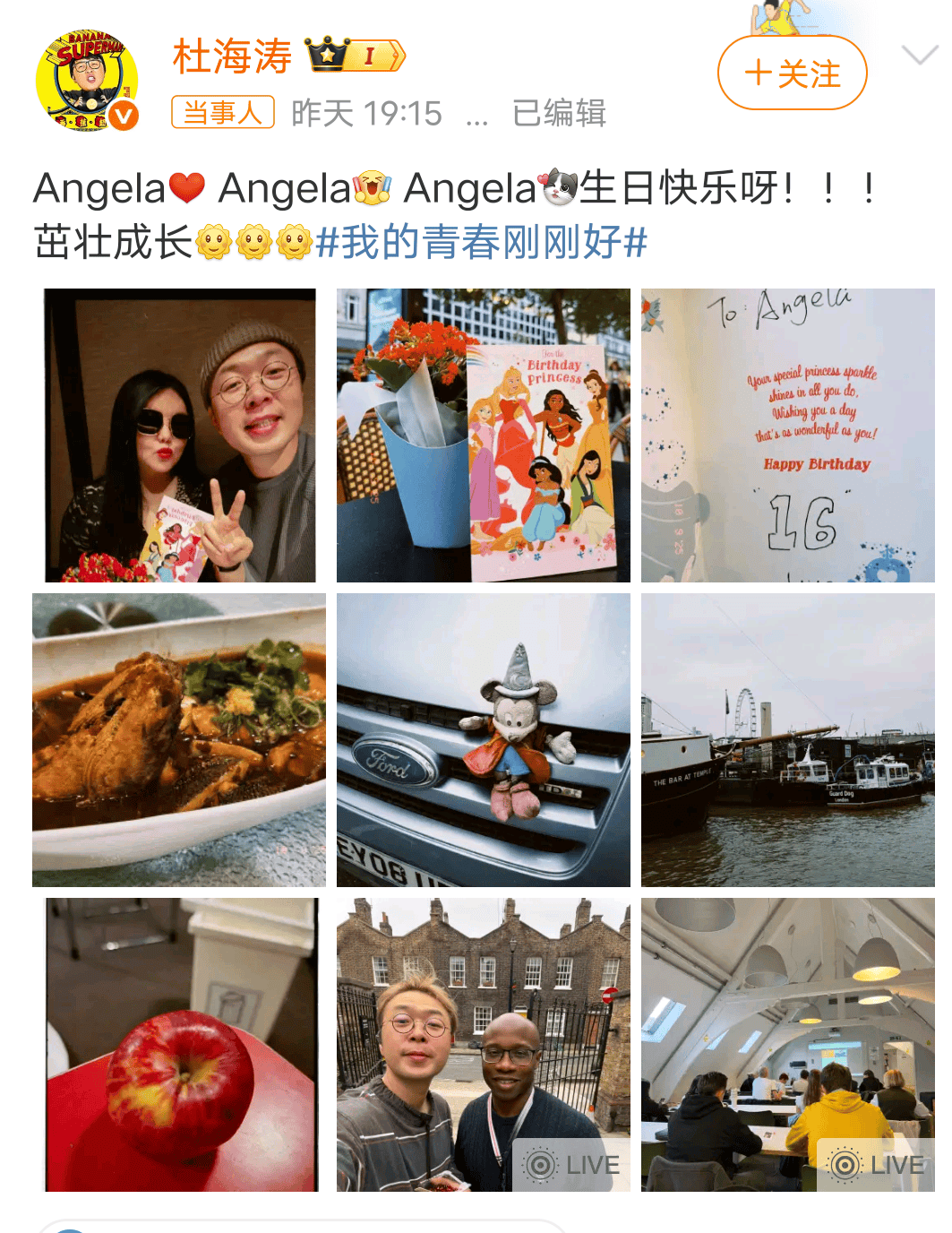 10 月 13 日是王诗龄的生日,杜海涛在伦敦游学期间与李湘母女相聚。他心情大好,在微博上发了一大堆祝福语,还分享了聚餐的趣事,说 “湘姐请我吃了超级多的东西,一起拍了 vlog”。本想着秀一下友情,结果不小心把王诗龄的英文名 Angela 写成了 Angle。Angle 你知道吧,意思是 “角度”,和王诗龄完全不搭边,这下网友可抓住了把柄,纷纷调侃杜海涛 “天使变角度”。