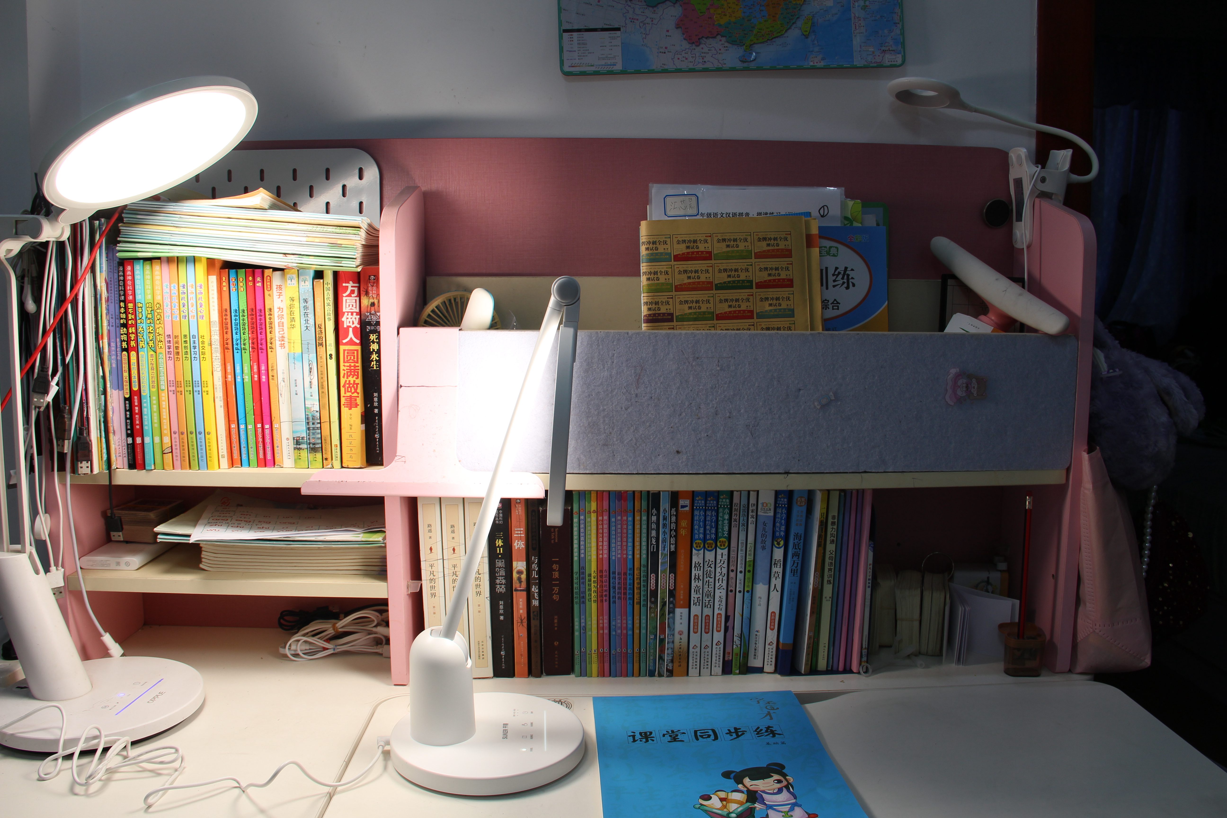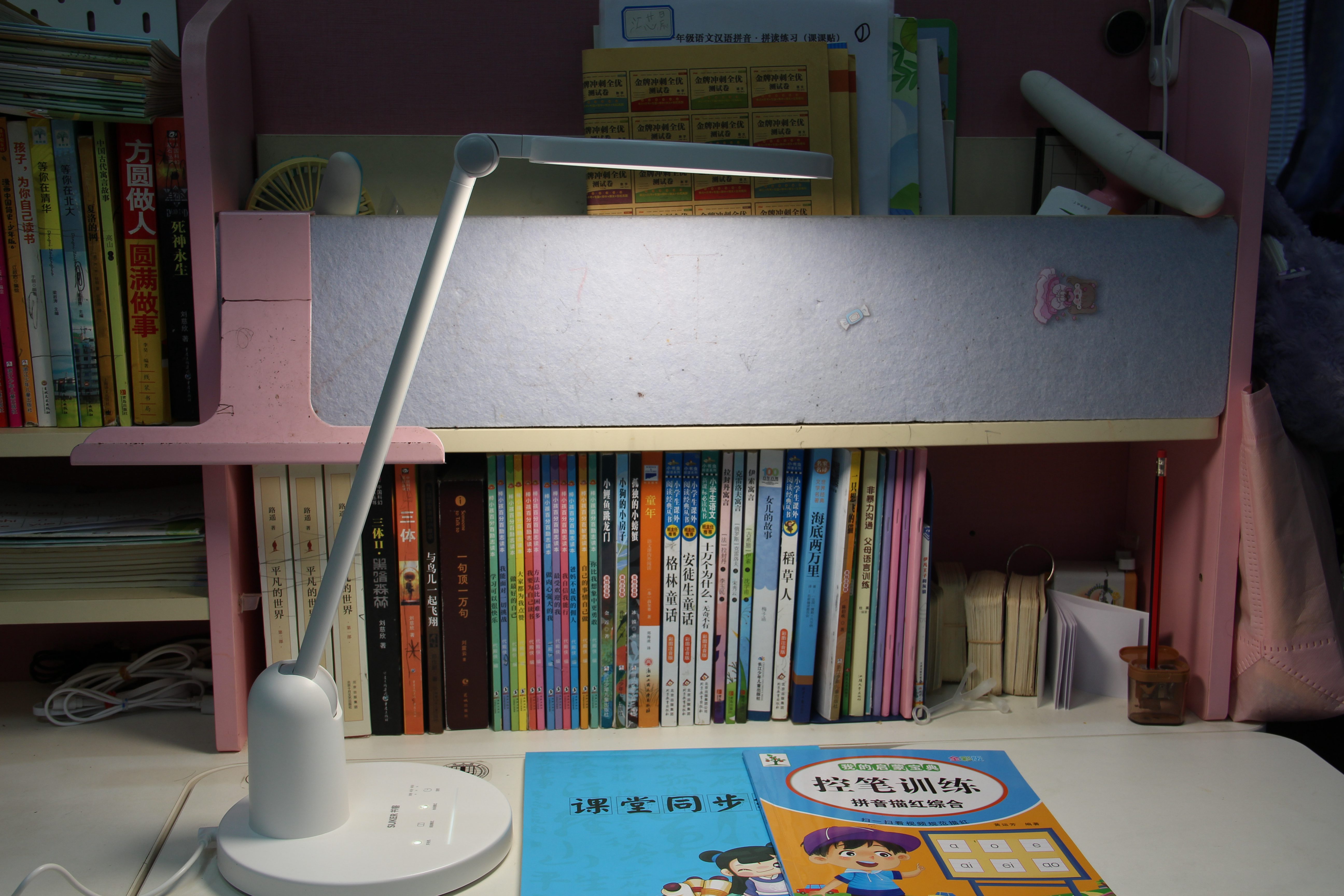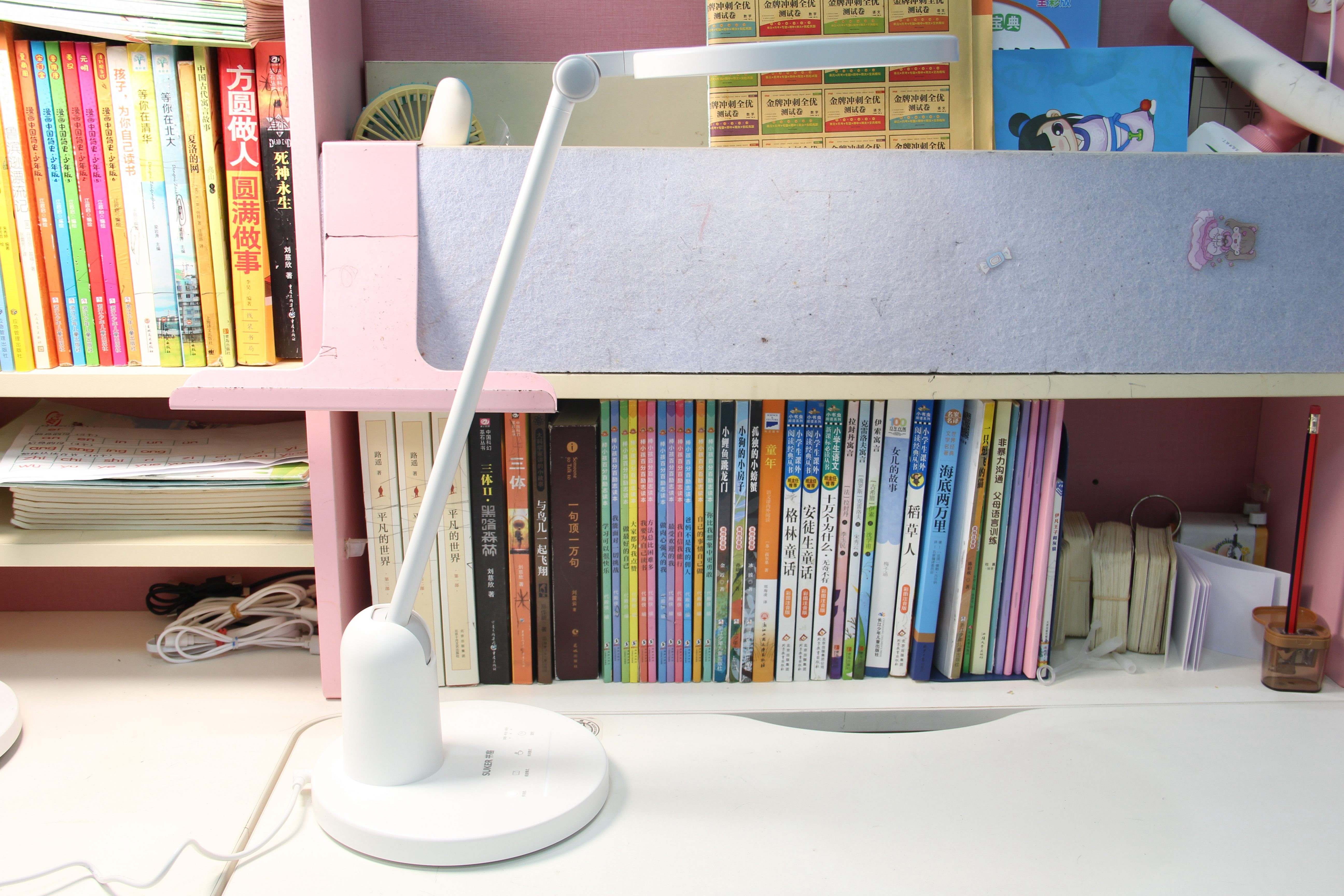 调节时的阻尼感特别讲究:顺滑却不松垮,无论把灯臂拉到最高还是压到最低,都能精准悬停,不会突然“低头”砸桌面。我试过两种极端场景:把灯头压低聚焦绘本小字,阴影淡到几乎看不见;拉高后照亮1.2米书桌,我和孩子同时用桌也能均匀受光。