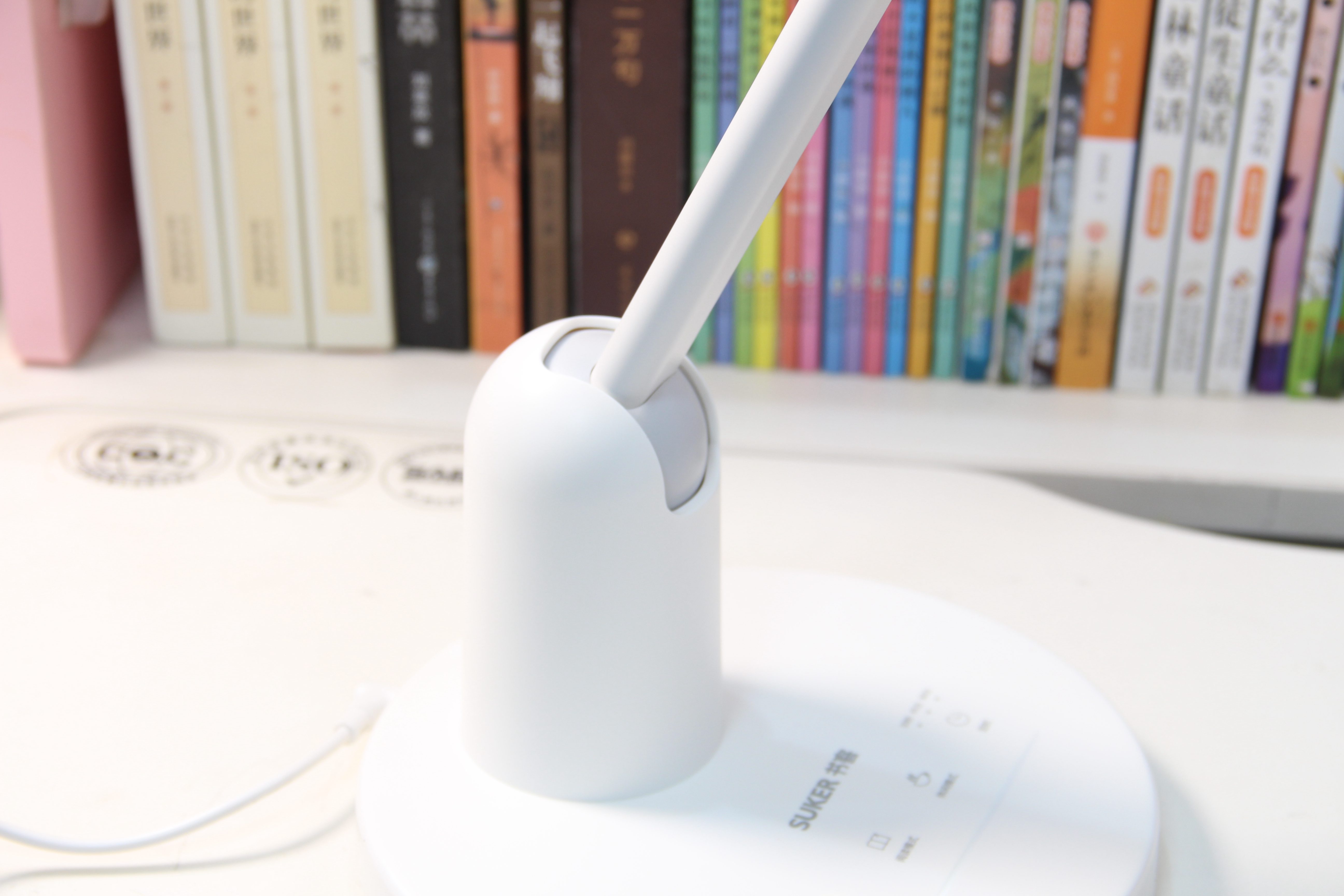 底座设计堪称“小户型救星”,直径15cm、厚3cm的圆形底盘,放在儿童书桌角落也不占地方,却异常稳固——我故意让孩子轻推桌面,台灯纹丝不动,彻底解决了老款“一碰就倒”的隐患。底座边缘的圆弧处理也很贴心,避免孩子跑动时磕碰,细节里藏着对儿童场景的考量,跟其他品牌的台灯比,亮度不逊色,占地更小,可以腾出更多的地方放其他学习用品。