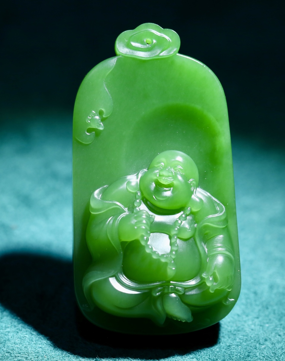 作品主要以汉传、藏传(密宗)佛造像为主,兼花鸟山水为辅。其创作的弥勒佛作品,弥勒袒胸露肚,大腹便便,耳垂如珠,略显夸张的表现手法将弥勒饱满圆融的特征彰显淋漓,弥勒眉弯眼笑,天真乐观的笑容极具感染力。