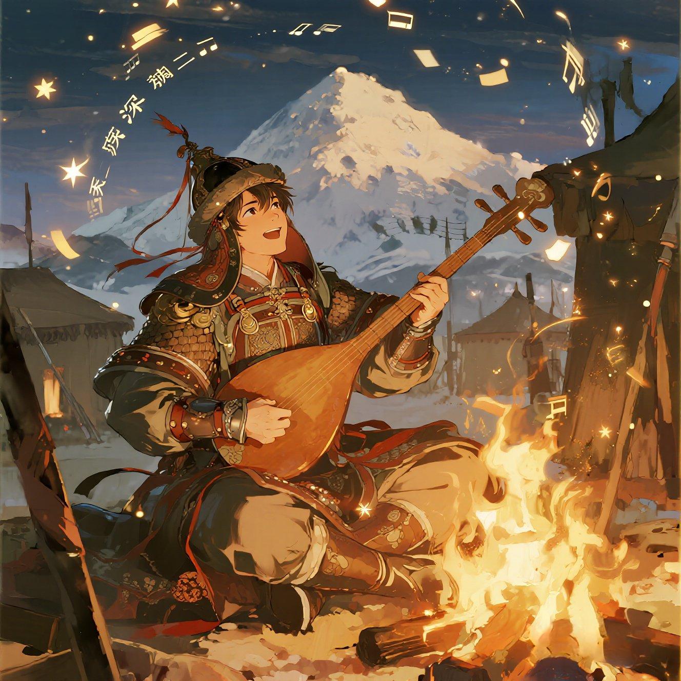 "金甲寒凝铁衣重,烽火不灭心难封。纵使血染征袍冷,犹存诗骨傲苍穹"