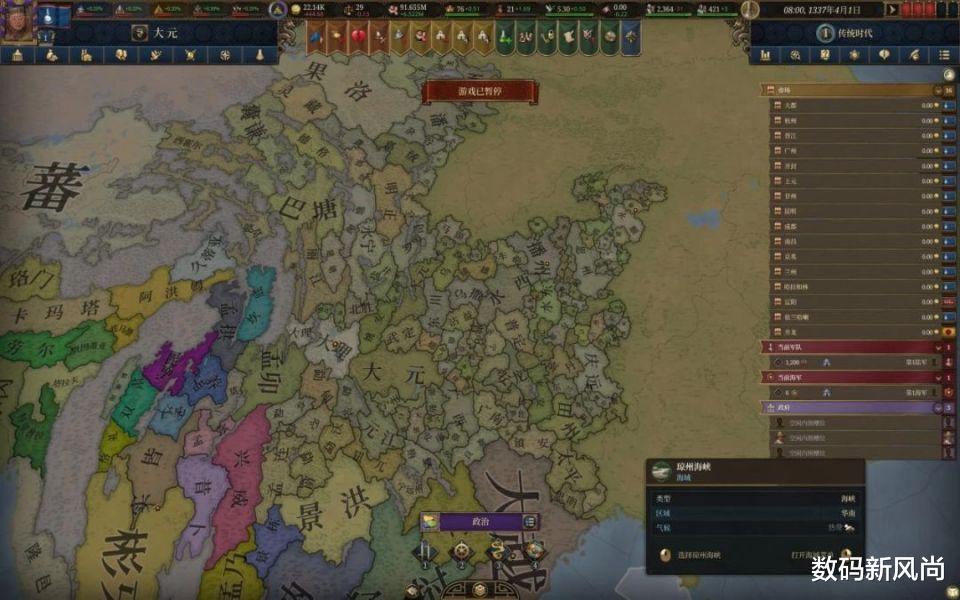 《欧陆风云5》在细节设计方面可以说叹为观止,可探索区域从前作的2500个飙升至超3万个,国家、宗教、文化数量均翻数倍。全3D化地图取代了传统的纸片地形,山脉起伏、河流流动与海岸浪花的细节清晰可见,让“地图涂色”爱好者直呼过瘾。另外还有动态季节系统,让冬雪春樱的交替不仅是视觉景观,更直接影响行军速度与补给效率。