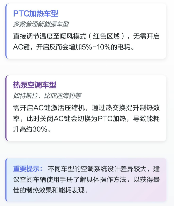 ✅所以如果你开的是新能源车,轮谷建议查一下说明书,看看你家的车是不是热泵空调。