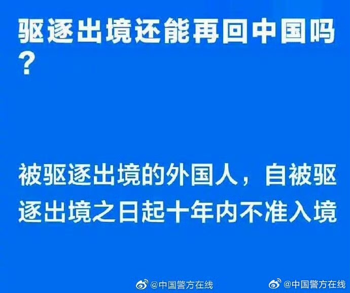 吴亦凡二审维持原判,有网友提问,被驱逐出境之后还能再回中国吗?中国警方公安部治安管理局回答:“被驱逐日起,十年内不准!”