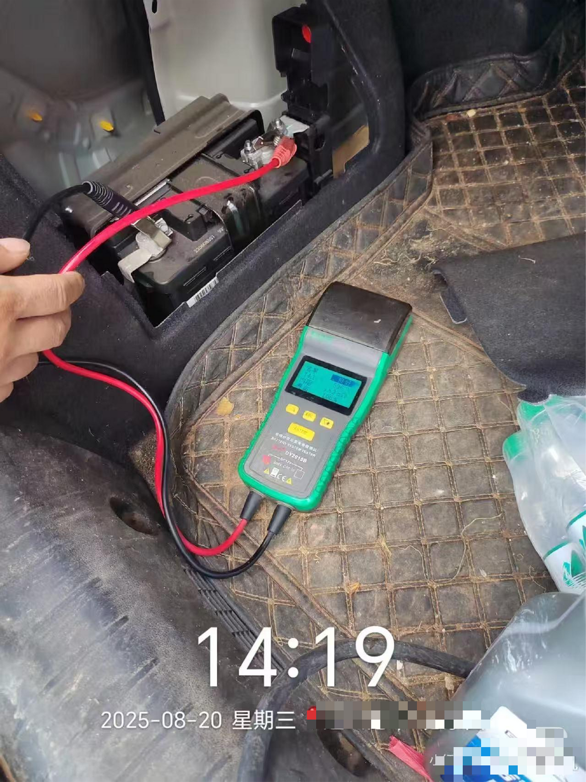 仅用25分钟,田师傅就抵达亿家园小区南门。他第一时间为张先生递上冰镇饮品降温,随后仔细检测车辆蓄电池,确认是亏电导致无法启动。田师傅熟练地进行搭电操作,同时耐心向车主解释,频繁短途行驶且不及时关闭用电设备会加速电瓶损耗,建议日后注意观察,必要时进店检测或更换。