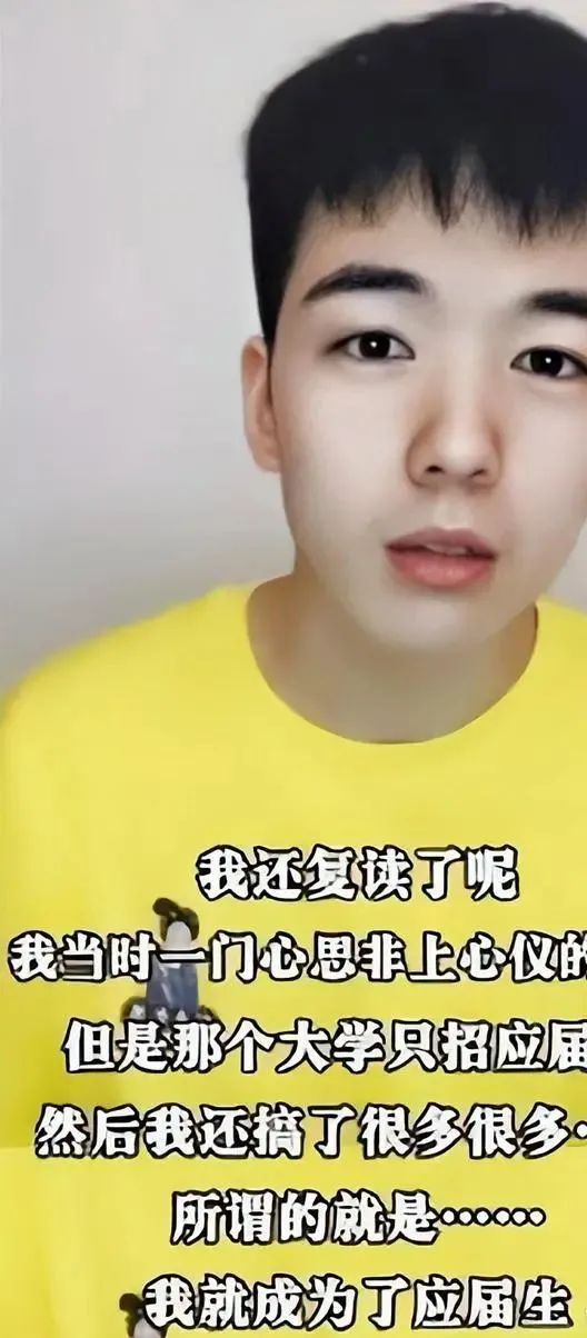 仝卓在直播中自曝为考入心仪大学修改往届生身份。
