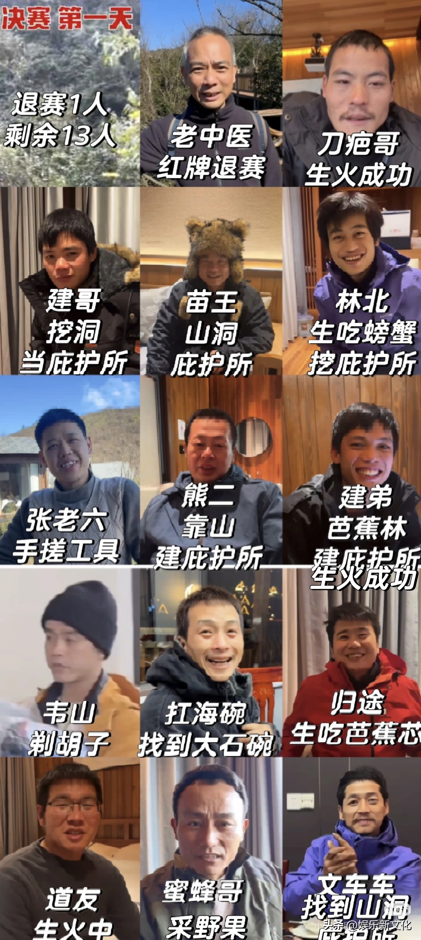 其他选手进展如何呢?一起来跟小编看看吧。首先就是一号种子选手,苗王。苗王第一天钻木取货失败了,不过他找到一个绝佳的庇护所,一个天然的大岩洞。这个岩洞空间很大,里面稍加平整一下,铺上草就可以当床,后续再用树枝编个门,就是绝佳的庇护所。刀疤哥、蜜蜂哥、还有林北都看中了这个岩洞,不过苗王抢先一步得到了这个岩洞。