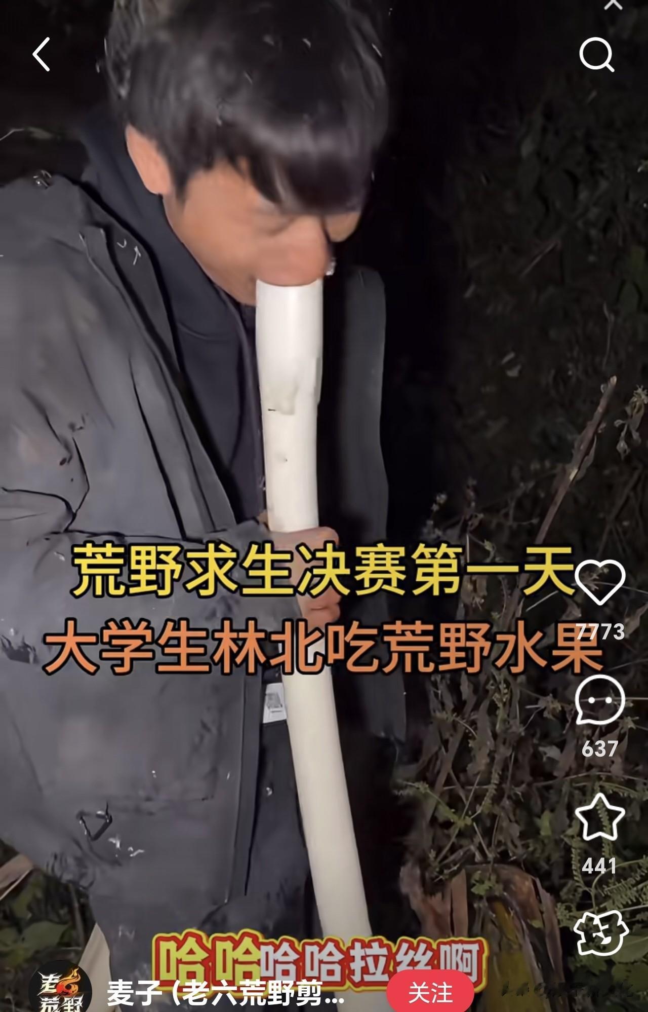 人家吃芭蕉心好歹弄成一小节,他直接人那么高的一根就开始啃,啃一口还拉出长长的丝,简直笑死了。