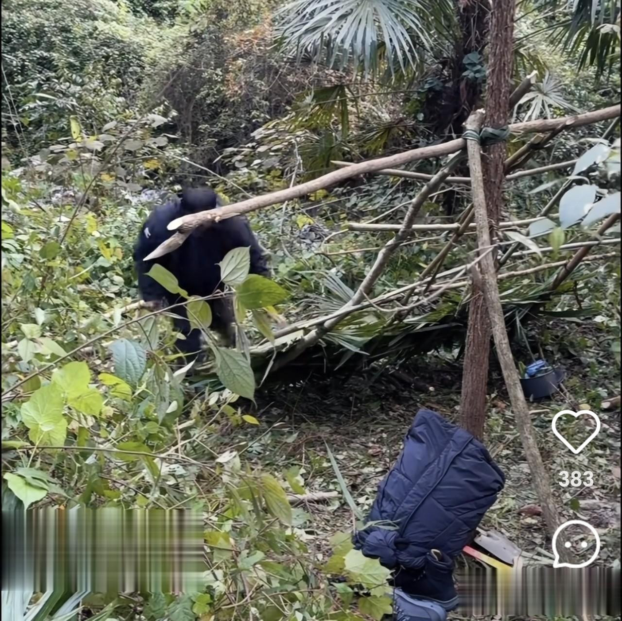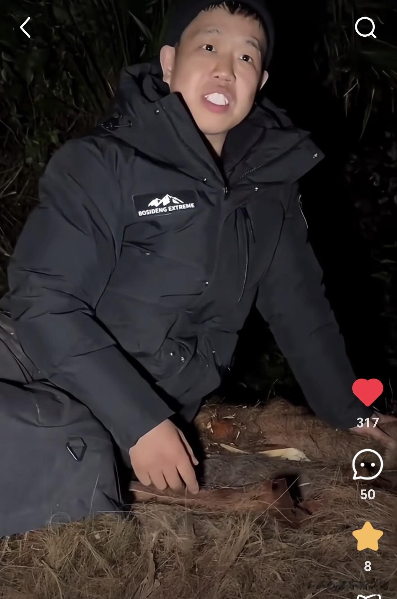 其他选手,只有建弟成功取火,而且建弟的庇护所也初具雏形了。他巧妙地利用一棵树搭建了一个稳固地三角形,然后只需要在周围编好树枝挡风遮雨就可以了。讲真,小编觉得这个比林北挖洞更安全,也更节省体力,林北的洞不但潮湿,还有塌方危险。