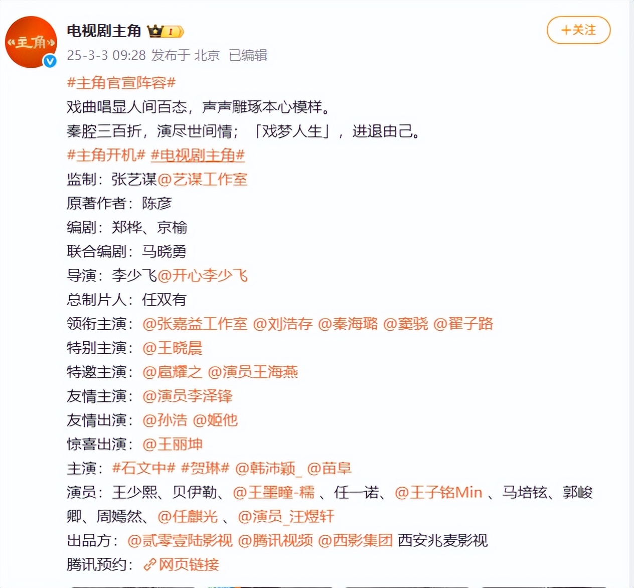 主角官宣阵容# 戏.... 新浪微博. [2025-03-03].