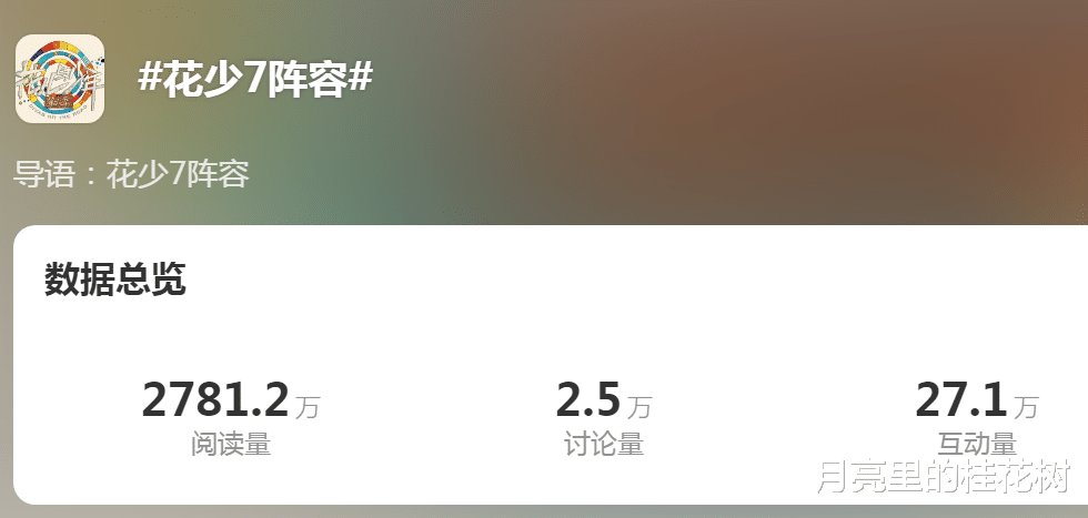 最近,《花儿与少年》第七季(简称“花少7”)的网传阵容成了热搜焦点,引发了全网热议。阅读量高达2781.2万、讨论量2.5万、互动量27.1万,这波热度可不小,网友们都在猜测这个旅行真人秀会不会成为今夏的爆款。