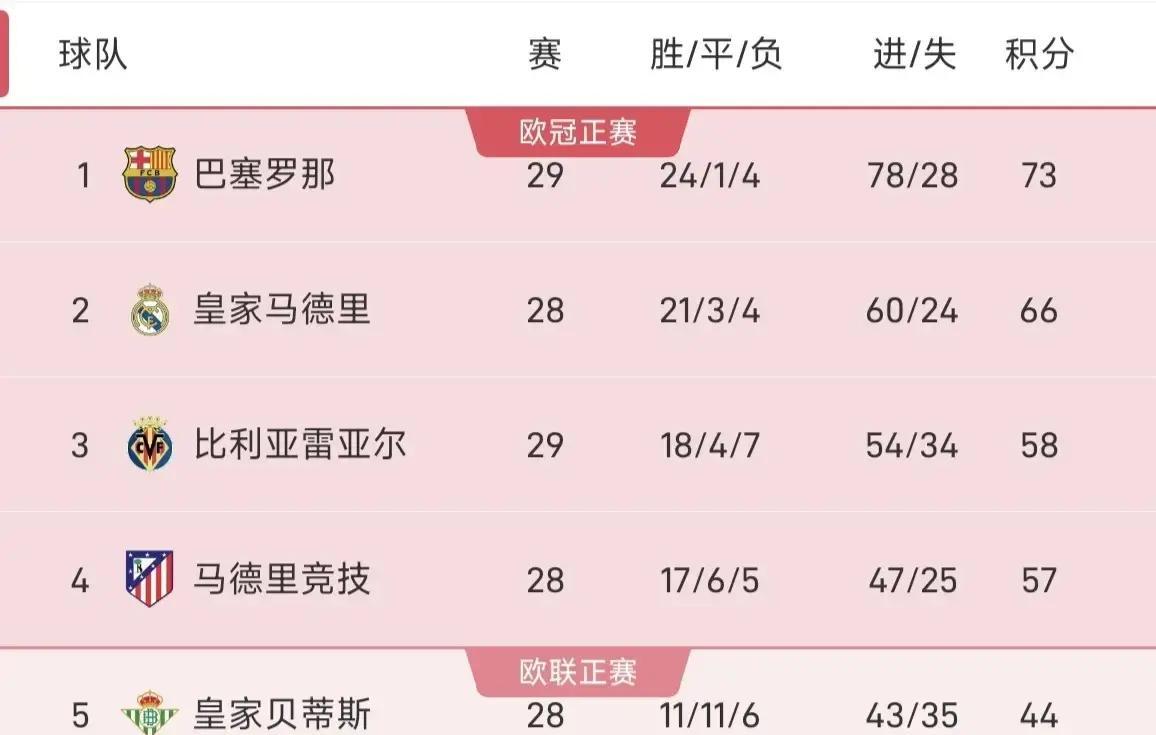 巴萨现在的状态确实稳,一波五连胜拿下来,积分榜上已经积了73分。先赛一轮领先皇马7分,这个数字在西甲这种环境下,给对手的心理压力是巨大的。