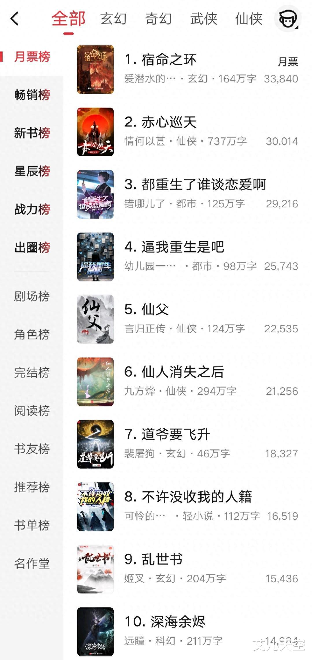 至于其余作品,乌贼的《宿命之环》暂时领跑,情何以甚的《赤心巡天》紧随其后这都是常见状态了。
