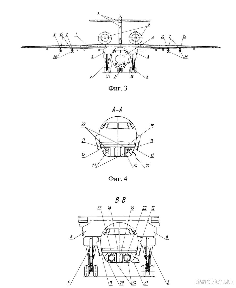 据悉,这款新型反潜/预警机的设计专利已由俄罗斯别里耶夫-塔甘罗格航空科学技术综合体申请,该机构的前身就是著名的别里耶夫设计局。从这款反潜/预警机的外形来看,明显是由别里科夫Be-200(别-200)两栖飞机改装而来。