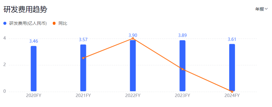 但2021年-2024年,九阳股份的研发费用大约在3.57亿元-3.9亿元之间,占营收比重几乎不超过4%;同期,九阳股份的销售费用在13.28亿元-15.93亿元之间,销售费用占营收占比在15%左右。