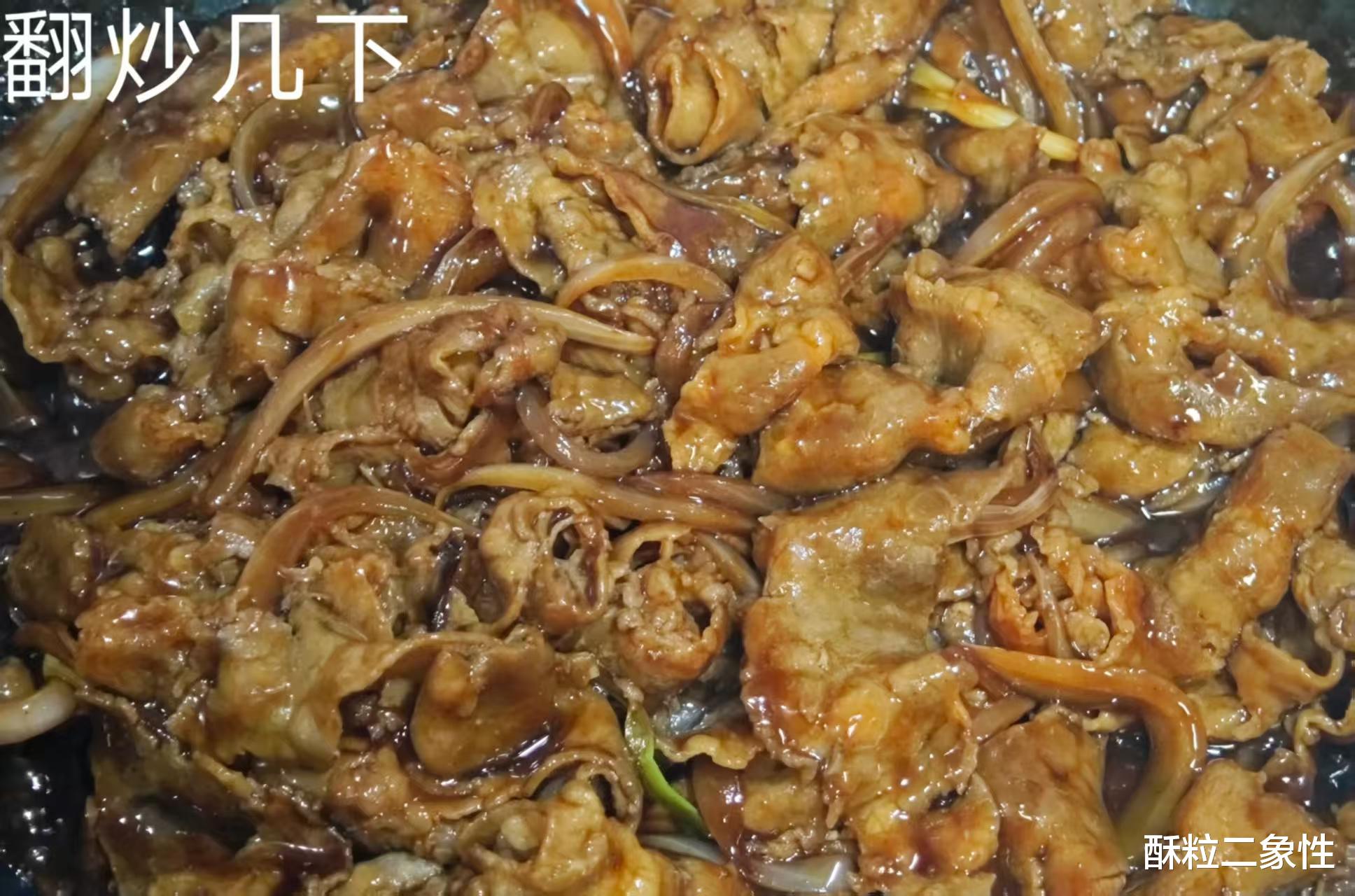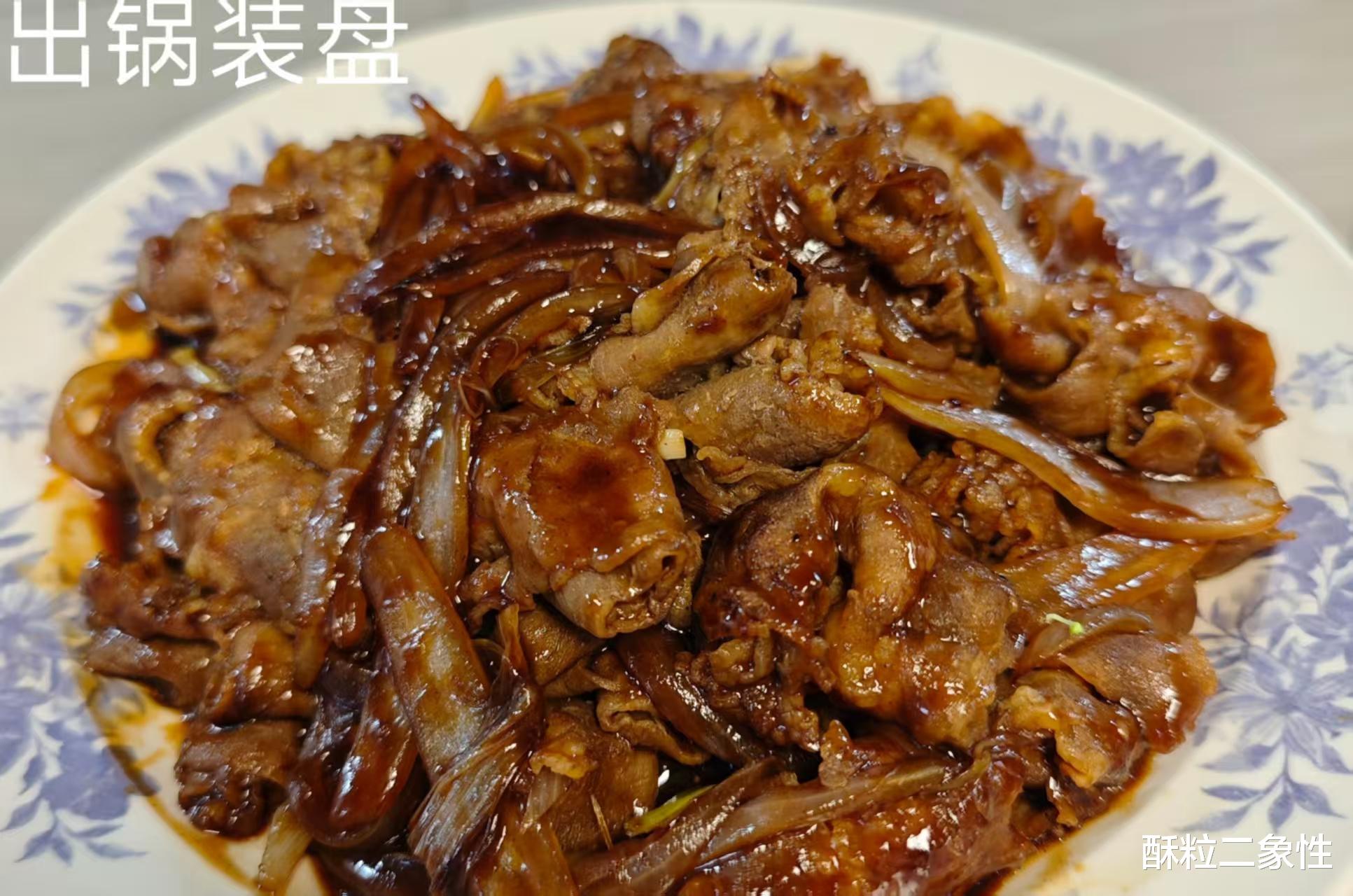 平底锅烧热,倒一点点油,洋葱先下去蹦迪,炒到边缘透明、甜味飘出来,再把肥牛卷平铺进去。火别太小,让牛肉迅速变色,血水一出现立刻倒掉,这是去腥关键,省得后面酱汁里“藏雷”。接着把调好的汁“哗啦”倒一圈,拿铲子轻轻推,肥牛片像穿泳衣一样被酱汁裹得严严实实,小火咕嘟两分钟,汤汁从稀薄变浓稠,亮到能照镜子,就可以关火。