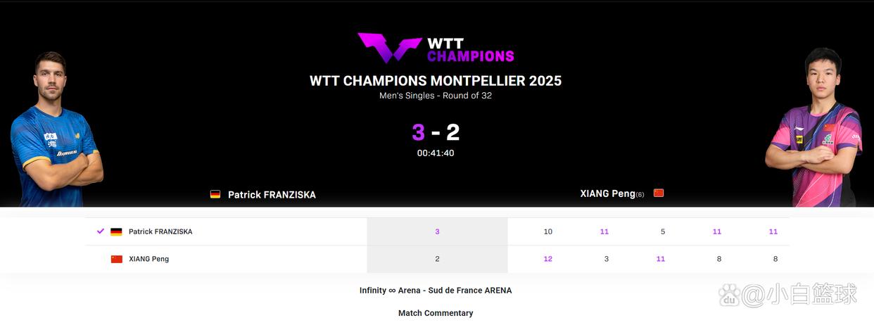 向鹏【9】12-10 3-11 11-5 8-11 8-11弗朗西斯卡【19】
