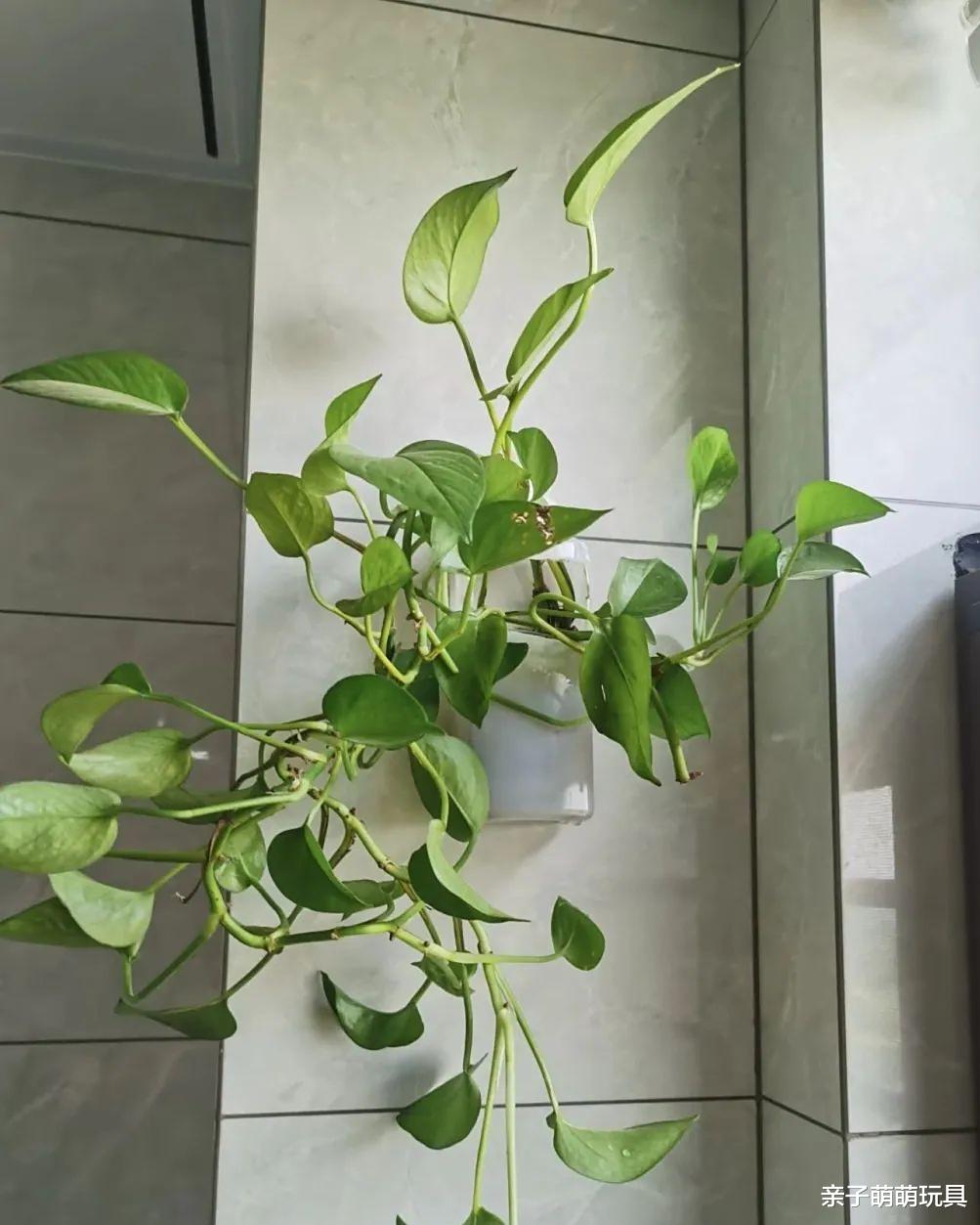 我第一次在厕所养绿萝,还是从小区保洁员王婶那儿学到的。她在物业处的卫生间里挂了盆绿箩,藤蔓垂得老长了,“绿箩外号‘水老虎’,平日里就爱喝厕所里的潮气,比你天天用抹布擦瓷砖都管用。”