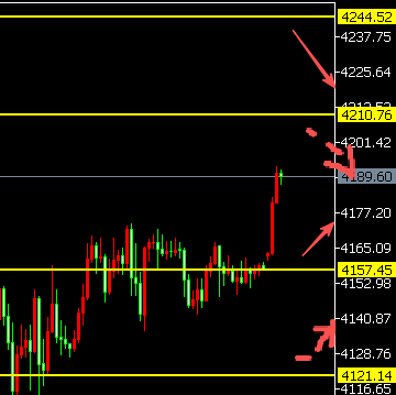 2、上方处在4210下方,再次回落调整,下方关注4157的位置。关注此位置支撑反弹,上方看调整,以及挑战新高。