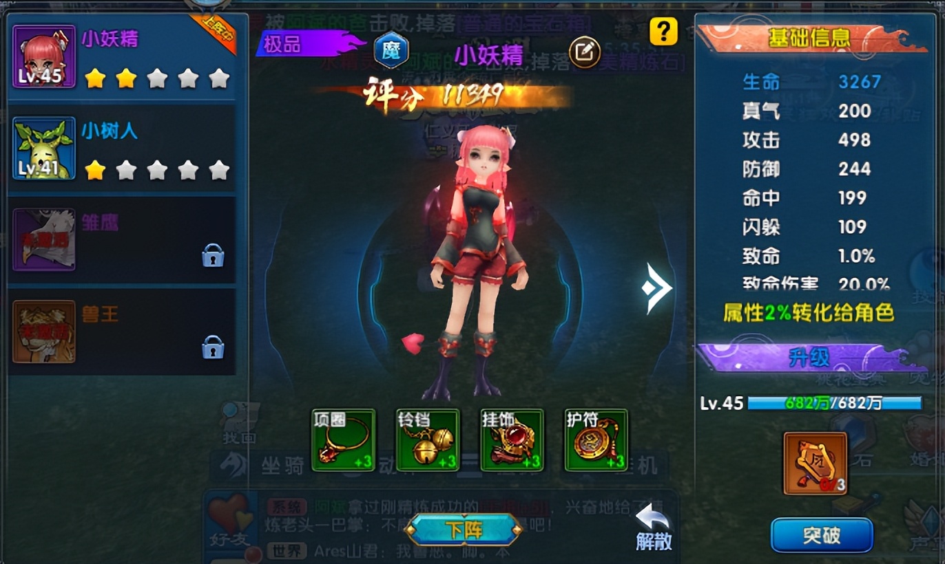 攻击型飞天虎王搭配“狂暴打击+连环斩”,能打出持续高伤;防御型树妖凭借“铁壁+反伤护盾”,可扛伤反打两不误;辅助型魔女的“治愈之光+鬼缠魂”,既能群体回血又能削弱敌人;飞禽系老鹰的“暴风突袭”,更能双保障暴击与命中率。