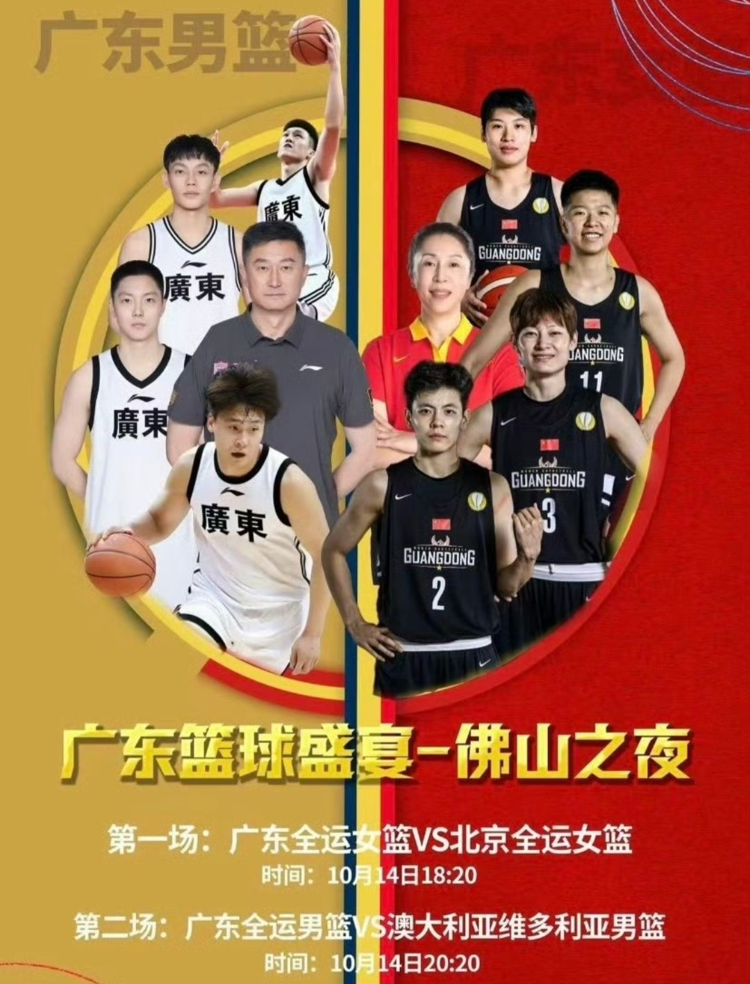 另外,广东男篮10月份还剩下四站热身赛,分别是10月14号 佛山禅城站,10月17号 深圳宝安站,10月19号 佛山顺德站以及10月21号 深圳龙华站。佛山站这就要开打了,而且男女篮都有比赛,男篮是晚上20:20分对阵澳大利亚维多利亚男篮。广东女篮是下午18:20对阵北京全运女篮,杜锋和郑薇,两人都曾经执教过国家队,广东为了这次全运会篮球项目的金牌也是拼了。