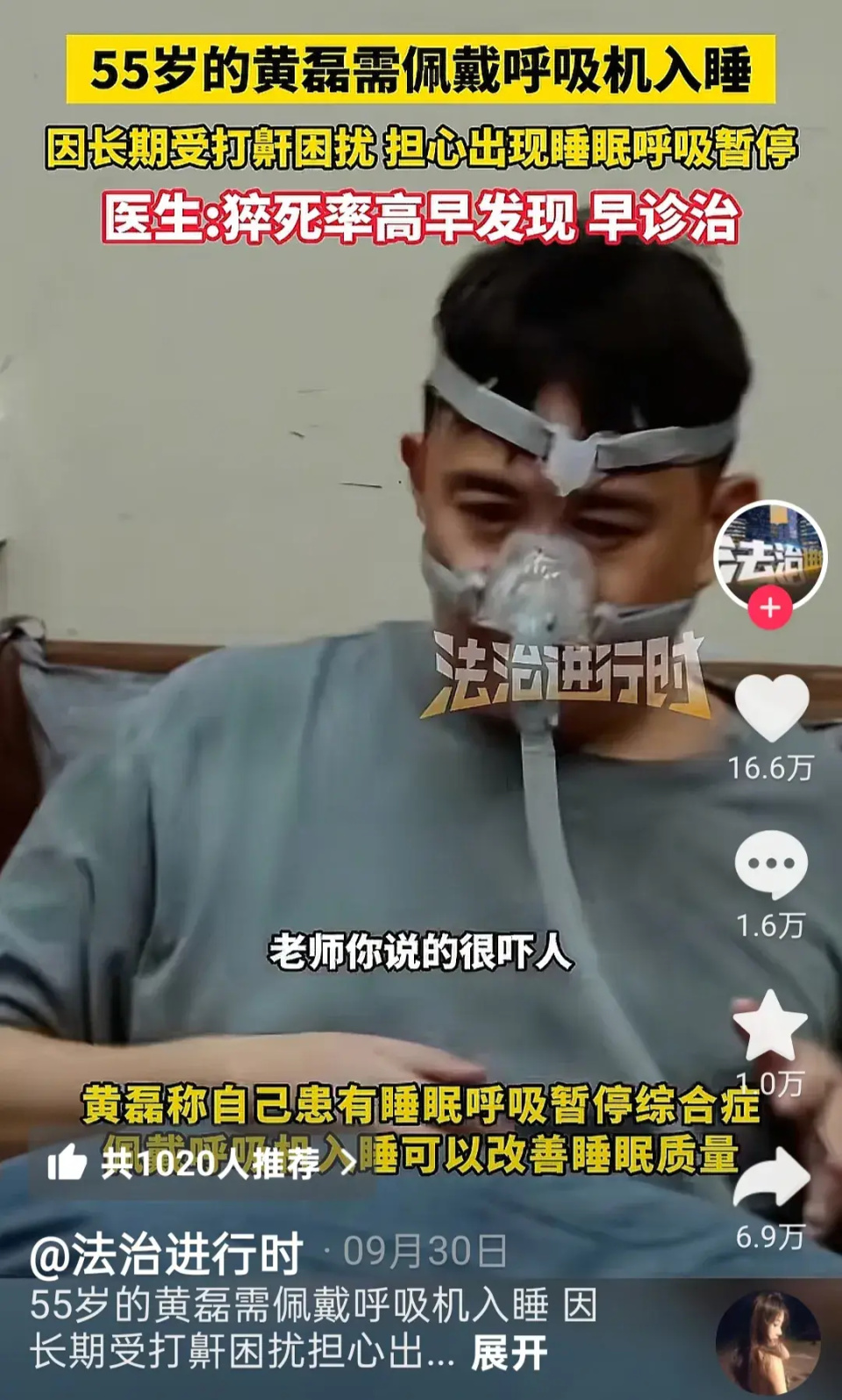 这类患者的典型表现除了鼾声响亮、不规则,还常伴有夜间憋气、喘息、频繁翻身,以及晨起口干头痛、白天嗜睡、注意力不集中等症状。黄磊佩戴呼吸机的情况,通常意味着病情已达中重度水平。