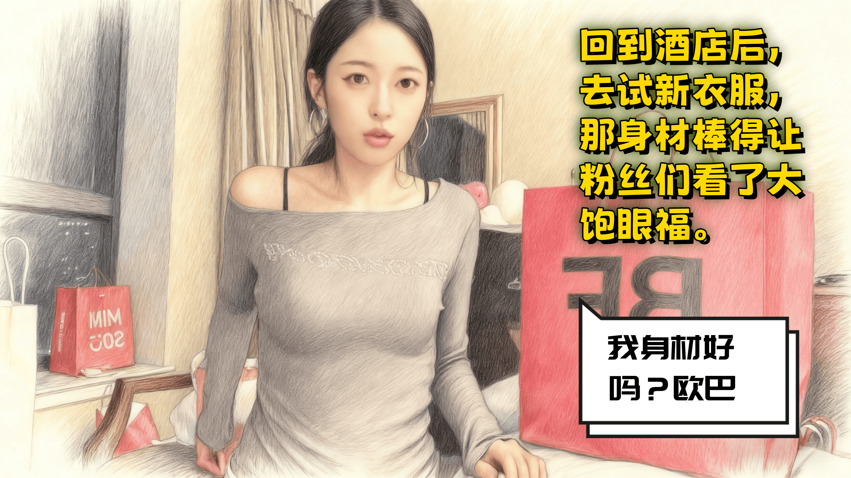 回到酒店后,去试新衣服,那身材棒得让粉丝们看了大饱眼福。