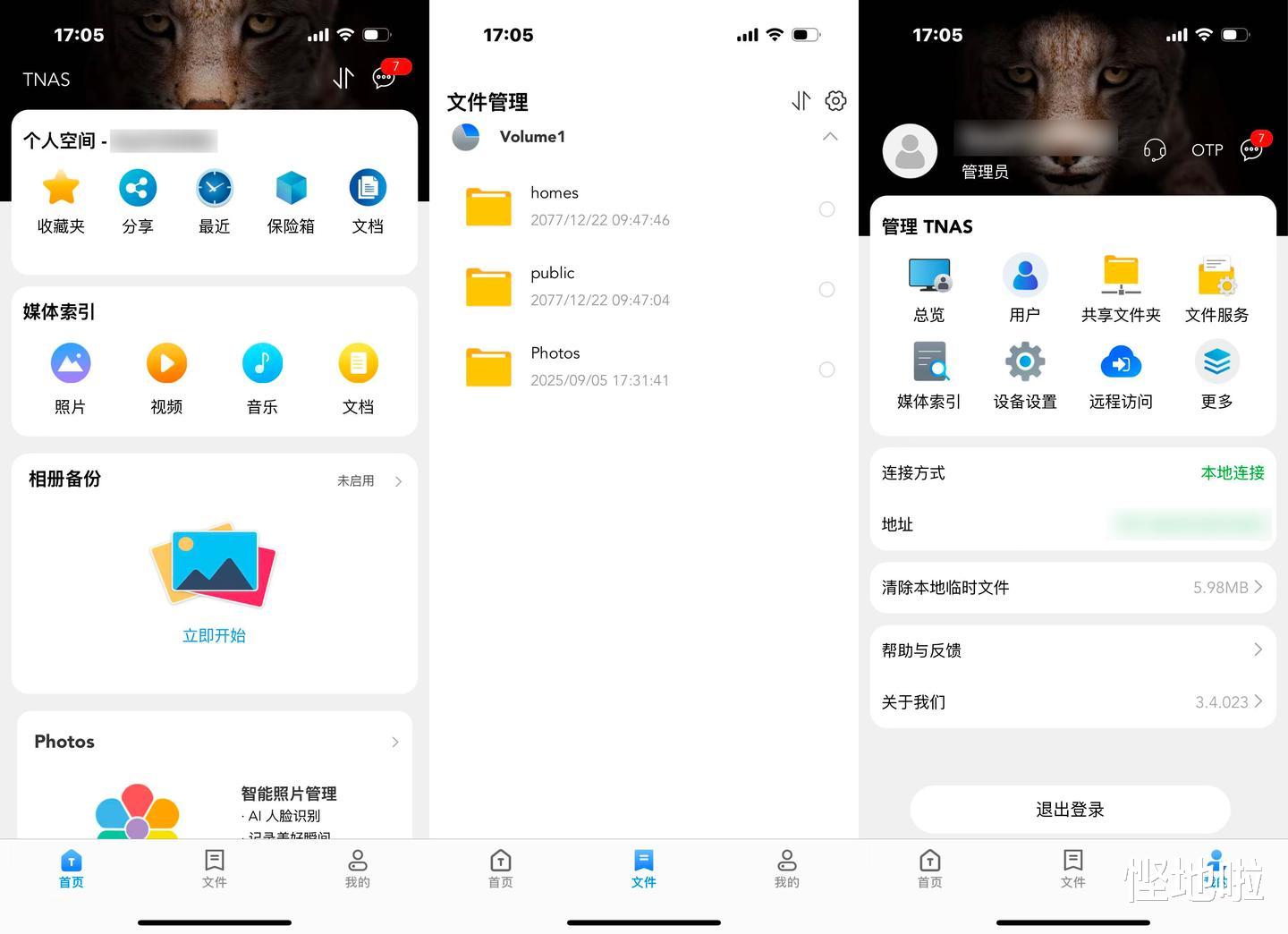 交互界面简单易用,首页没有太多功能按键,像相册备份、照片管理等常用功能指引很明确,就算是首次使用NAS的消费者来说也没压力。