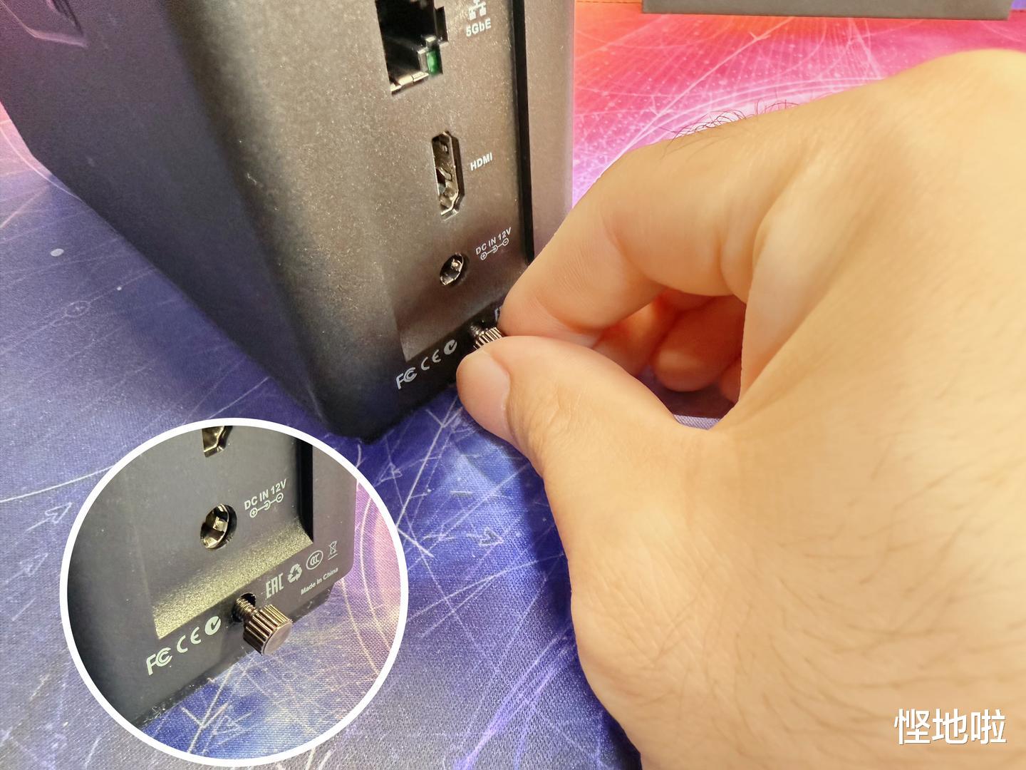 除了SSD安装简单,首次设置实际也很便捷,把附赠的网线和电源适配器接上,打开机身顶部电源开关键,听到开机提示声就算完成硬件准备。