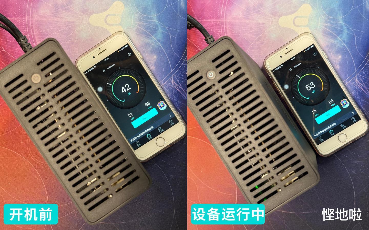可能不少用过NAS的用户对机械硬盘发出的炒豆子噪声都是深恶痛绝的,尤其是放在办公室或者书房时,“炒豆子”的声音不绝于耳,而F4 SSD因为采用M.2 NVMe SSD作为存储介质,因此就算在满负荷状态运行依然能保持静音状态,完全不会影响用户工作。PO主实测开机前室内噪声约42dB,开启设备运行,工作噪声显示约53dB,才提升了约11dB,几乎没有明显噪声。