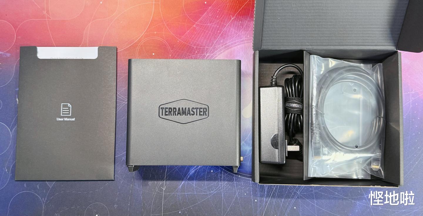 产品开箱正如上文提到,铁威马F4 SSD采用M.2接口SSD,因此在体积上就要远小于市面上的多盘位NAS。包装内部有珍珠棉保护,不用担心暴力运输,除了F4 SSD主体外,套装还包含了电源适配器、RJ-45网线和纸质说明书等。