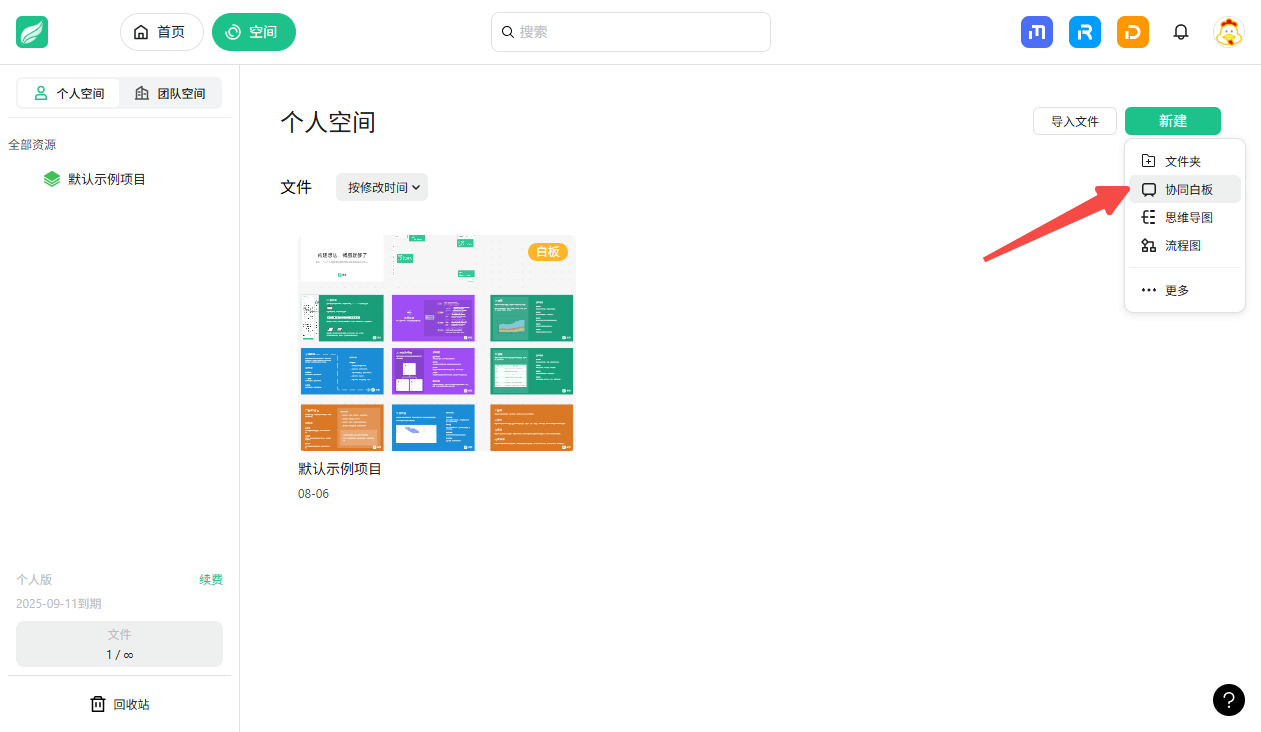 1、创建项目登录畅图:https://app.fluig.cn/home,新建一个白板项目,即可进入编辑页面。
