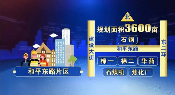 和平东路片区是石家庄6+2+2城市更新项目的重要一环,其包含棉一、棉二、华药、石煤机、石钢、焦化厂,规划面积 3600 亩。