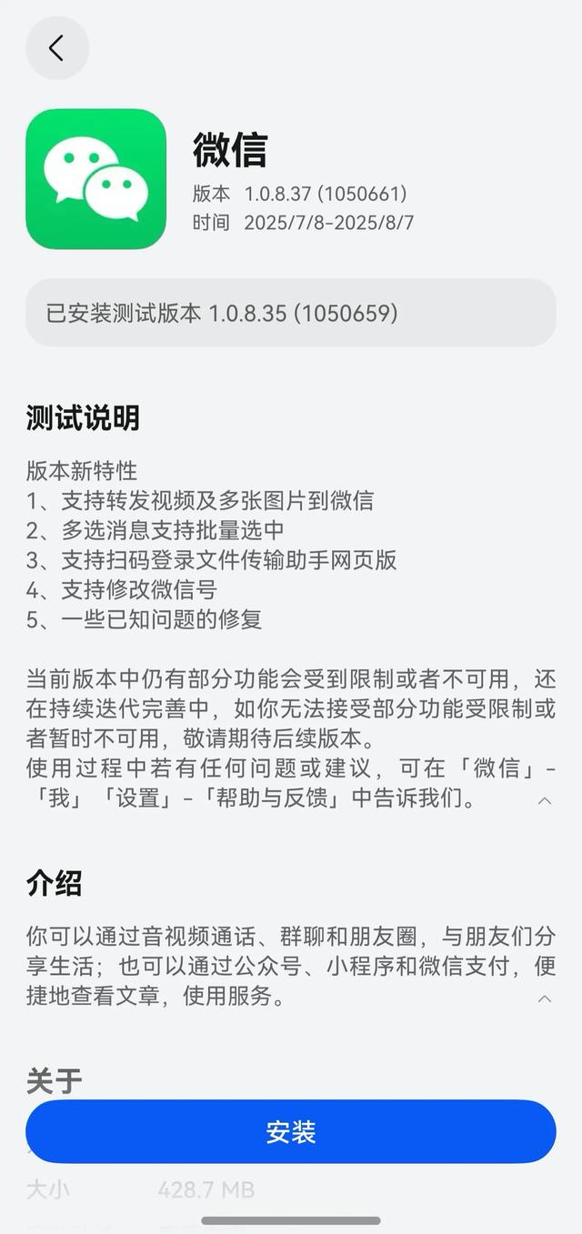 值得一提的是,鸿蒙版微信又双叒叕迎来大版本更新,最新版本已上线华为应用市场,此次升级新增:支持转发视频及多张图片到微信、多选消息支持批量选中、支持扫码登录文件传输助手网页版、支持修改微信号等重要功能。
