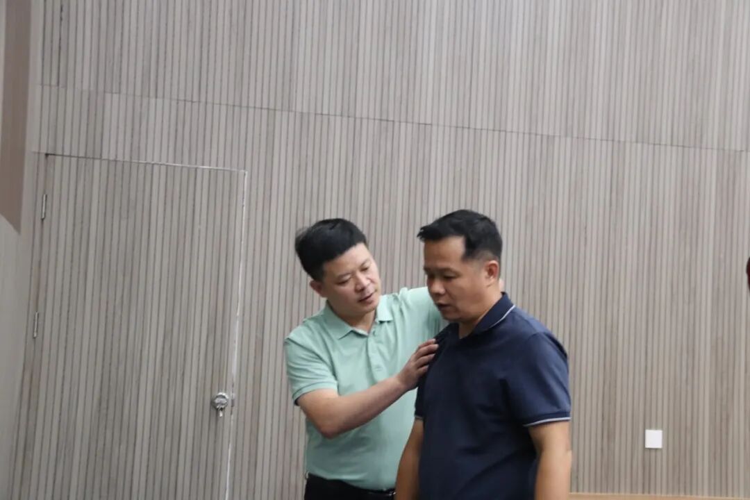 现场观众跟随林石明老师讲解,找到正确穴位,并锻炼练习