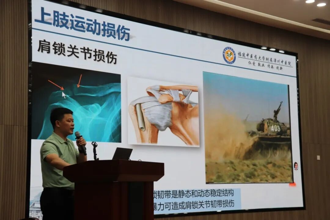 中医院专家入驻两场科普大讲堂讲座,在馆区掀起一阵“中医热”。“扭伤和拉伤后该怎么办?立即揉搓或热敷?”9月7日,漳州市中医院骨伤科副主任兼微创骨科病区主任范纯泉从常见部位的运动损伤、运动损伤的预防与应急处置、体能训练知识三方面入手,为122名观众带来干货满满的健康科普讲座《科学运动不“翻车”:从热身到急救的闭坑指南》。