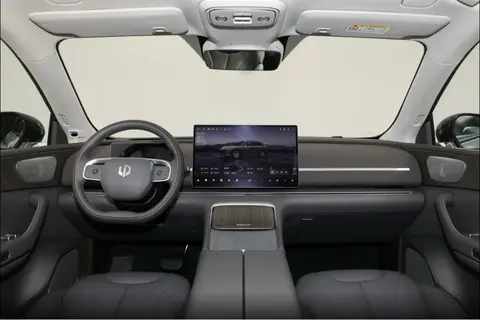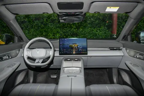 零跑C11的内饰风格同样极简,真皮方向盘设有加热功能,配备10.25英寸全液晶仪表和60英寸HUD,显示清晰,木纹饰板及双杯架设计实用。中控采用17.3英寸大屏,支持多种手机互联及高德地图,配备面部识别与驾驶状态监测。全车21个扬声器搭配256色氛围灯,支持夜间防眩后视镜和隔音玻璃,内饰质感上乘,空间静谧性良好。