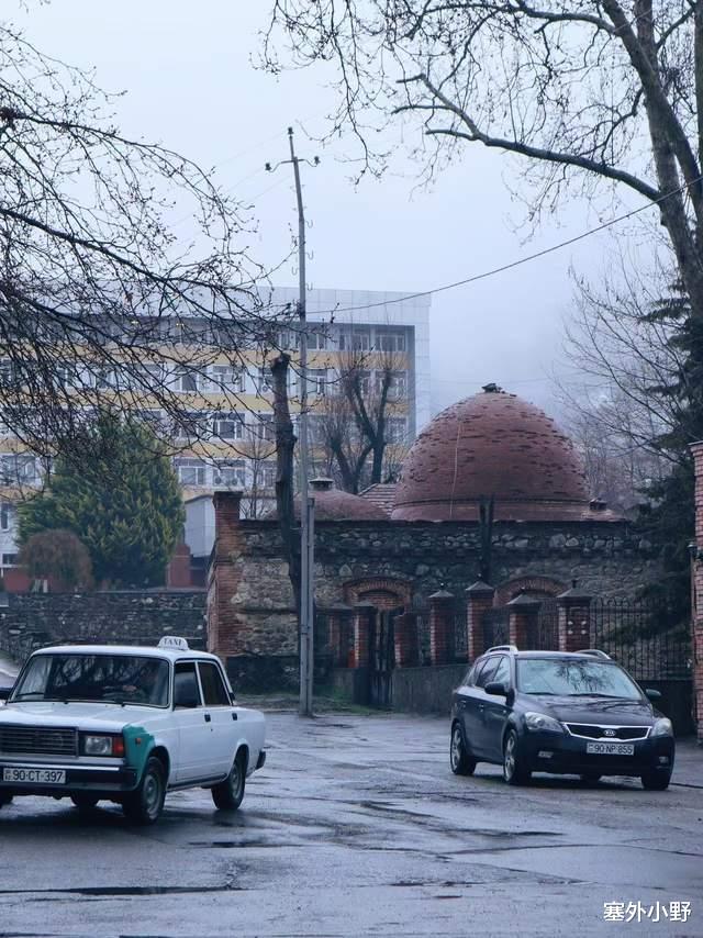 巴库国际客运站,每天都有大巴往返巴库与舍基之间,沿途是黄尘沙漠到草原牧场的更迭。傍晚时分来到舍基,群山围绕的小镇,笼罩在朦胧雾色之中。高山墙屋顶建筑和复古的英伦小车,仿佛令人走进中世纪的欧洲小镇,一场时光穿越的旅行,古老悠远的梦境。
