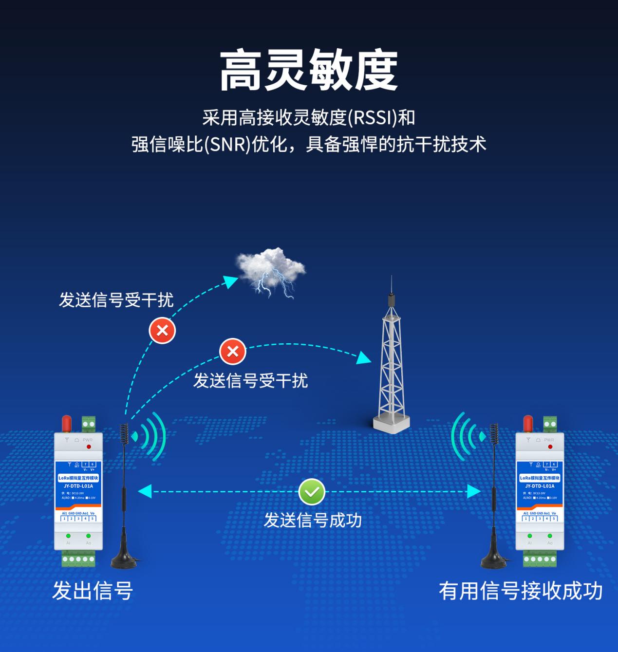 强化复杂环境抗干扰性:工厂车间有变频器、大型电机等强电磁干扰源的场景,需选择具备扩频技术、光电隔离设计的模块,例如隔离电压2500V以上的型号,能避免电磁噪声和接地环路干扰;户外场景要关注防雷击、防潮湿设计,IP67防护等级的模块更适配污水处理厂、露天泵站等潮湿环境。