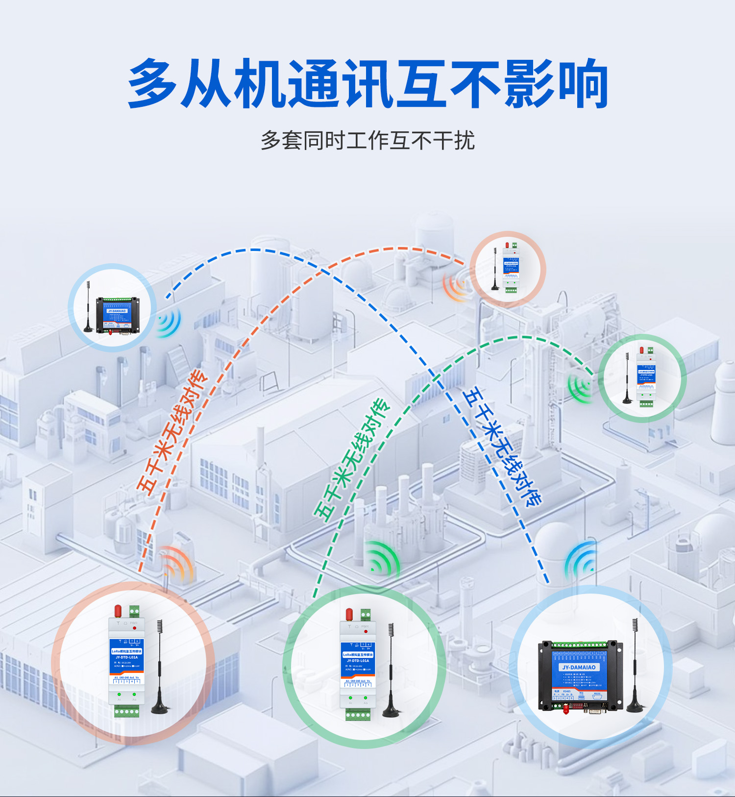 2. 有遮挡的复杂环境:在城市楼宇密集区、工业区、农田树林等有遮挡的场景中,墙体、金属设施、树木等会削弱信号,传输距离会显著缩短。普通模块在此类环境中可能仅能传输100 - 500米,密集工业区因金属遮挡较多,通讯距离会大大缩短。