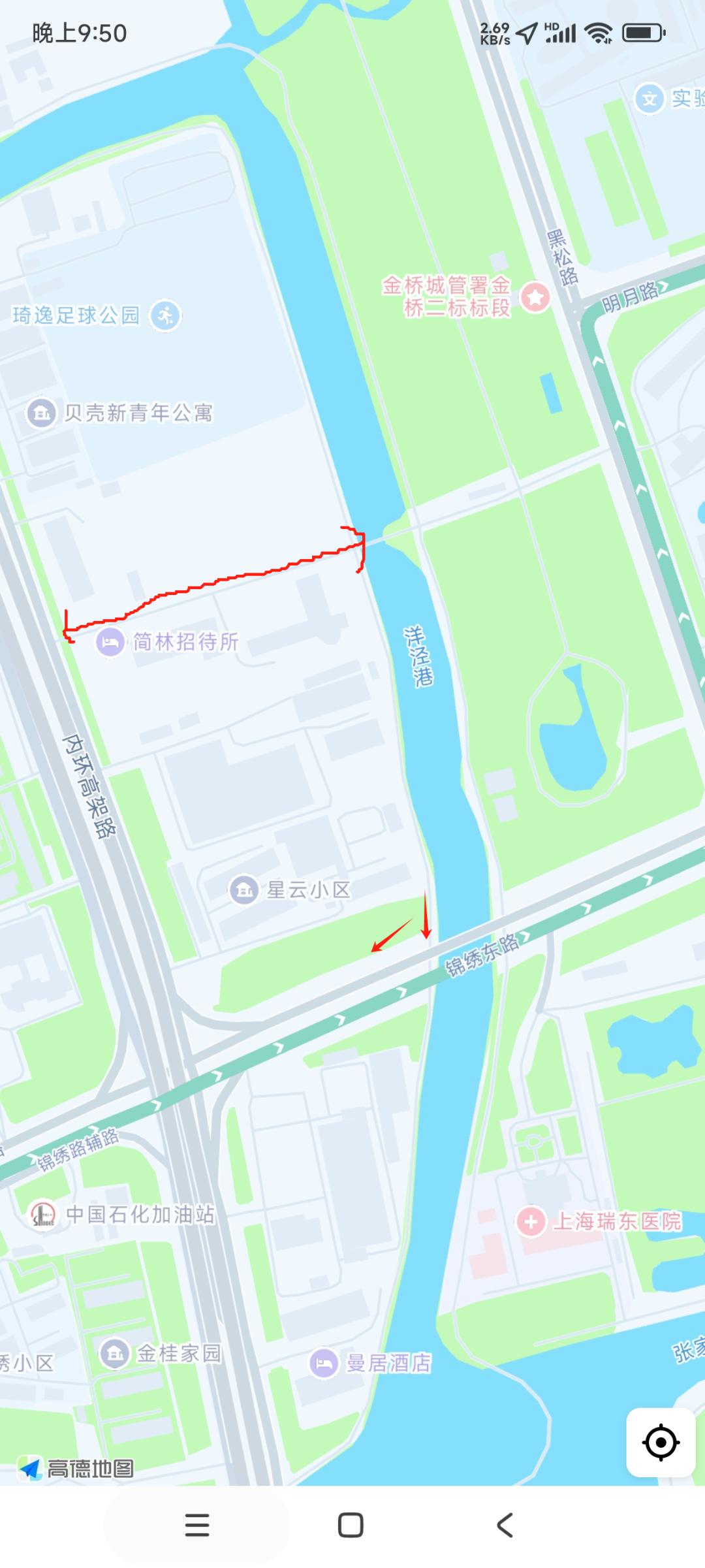 第三处,张家浜路和金桥路交叉口,目前需要绕路过红绿灯,如果打通桥底,将更便利。