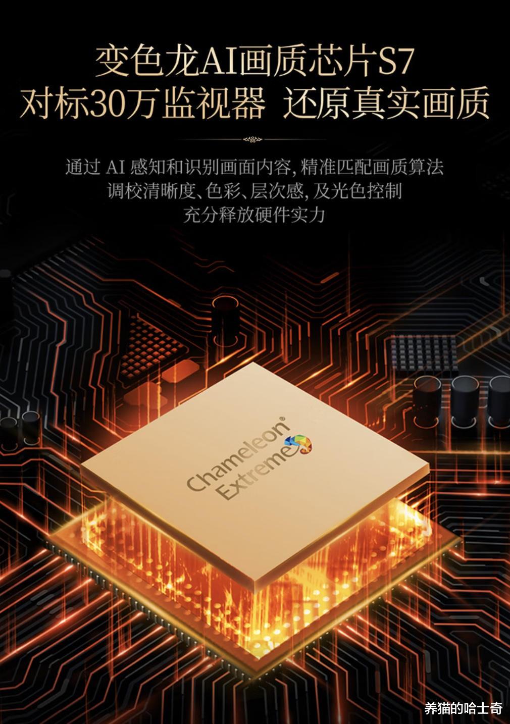 通过AI感知和识别画面内容,精准匹配画质算法、控光、色彩等的调教,这些都是建立在画质芯片的基础上的,这些画质芯片中创维变色龙™AI画质芯片S7是佼佼者,拥有全行业最高2.5T综合算力。