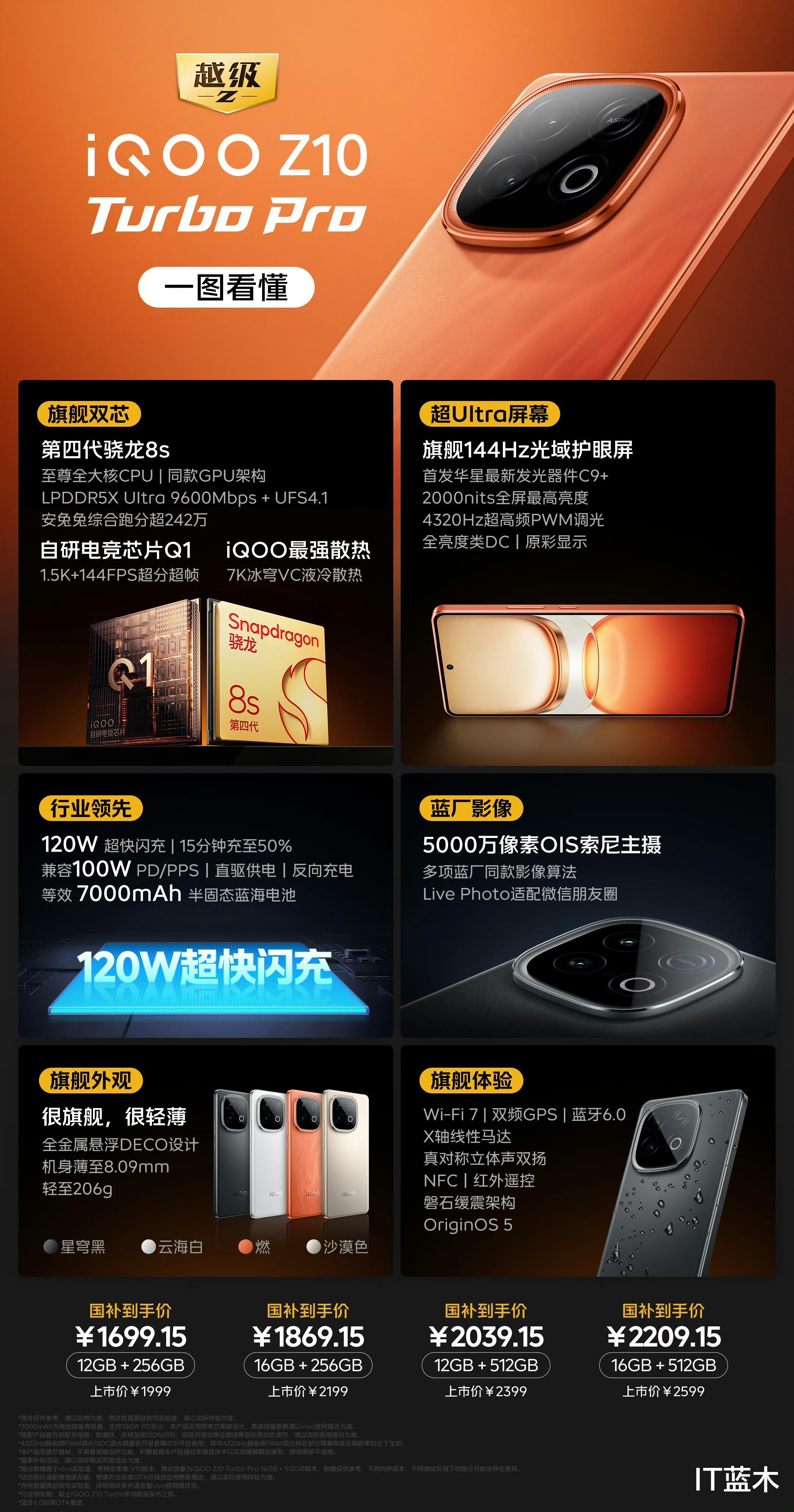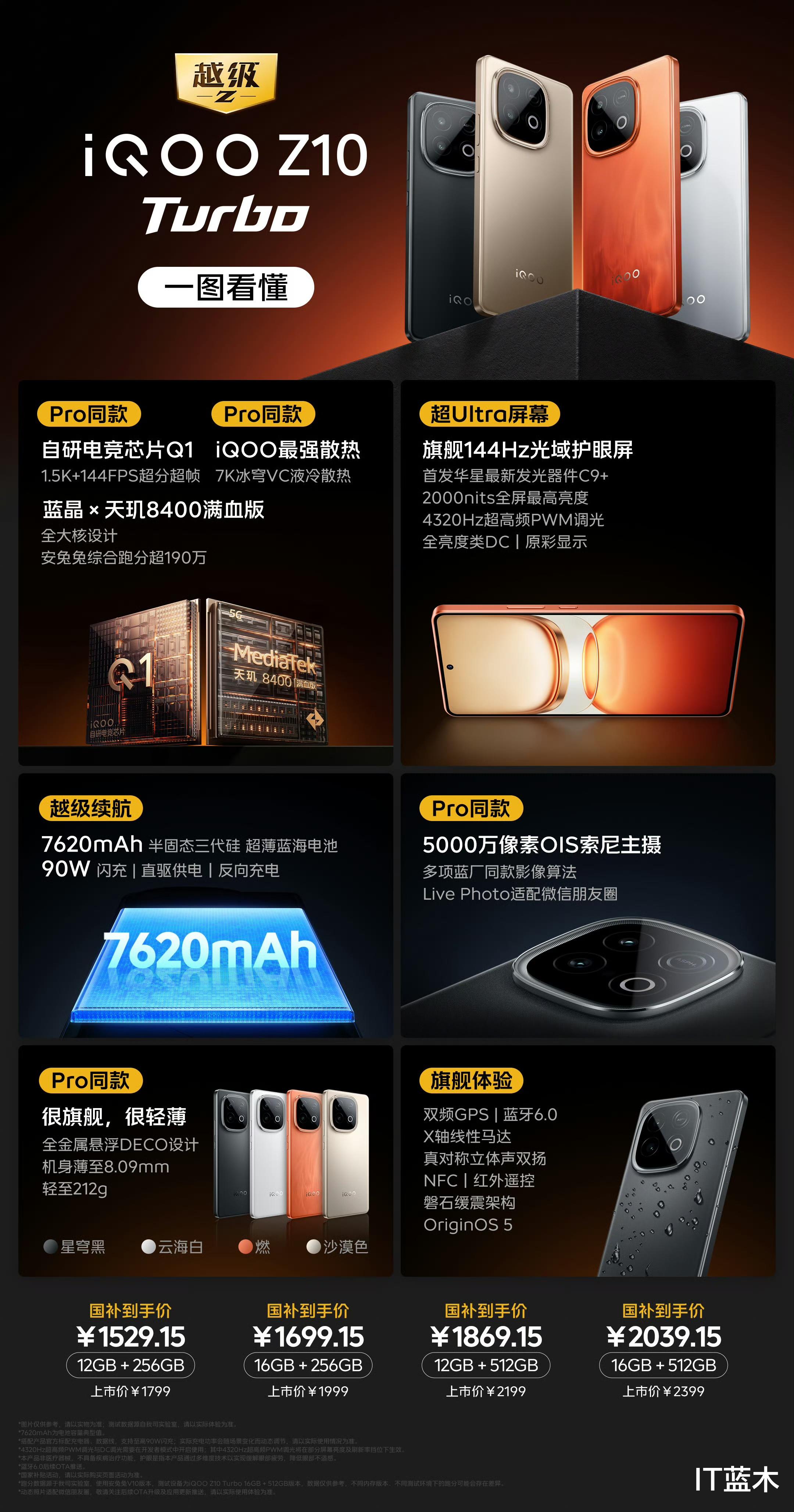 iQOO Z10 Turbo,内存12+256GB起步,价格1799元至2399元,国补后1529元起。iQOO Z10 Turbo参数如下: