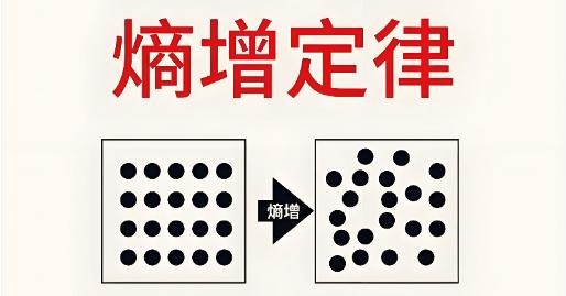 热力学第二定律,通俗点说就是“熵增定律”。它描述了一个残酷的事实:热量只能从高温流向低温,覆水难收,破镜难圆,封闭系统的混乱度(熵)永远在增加。